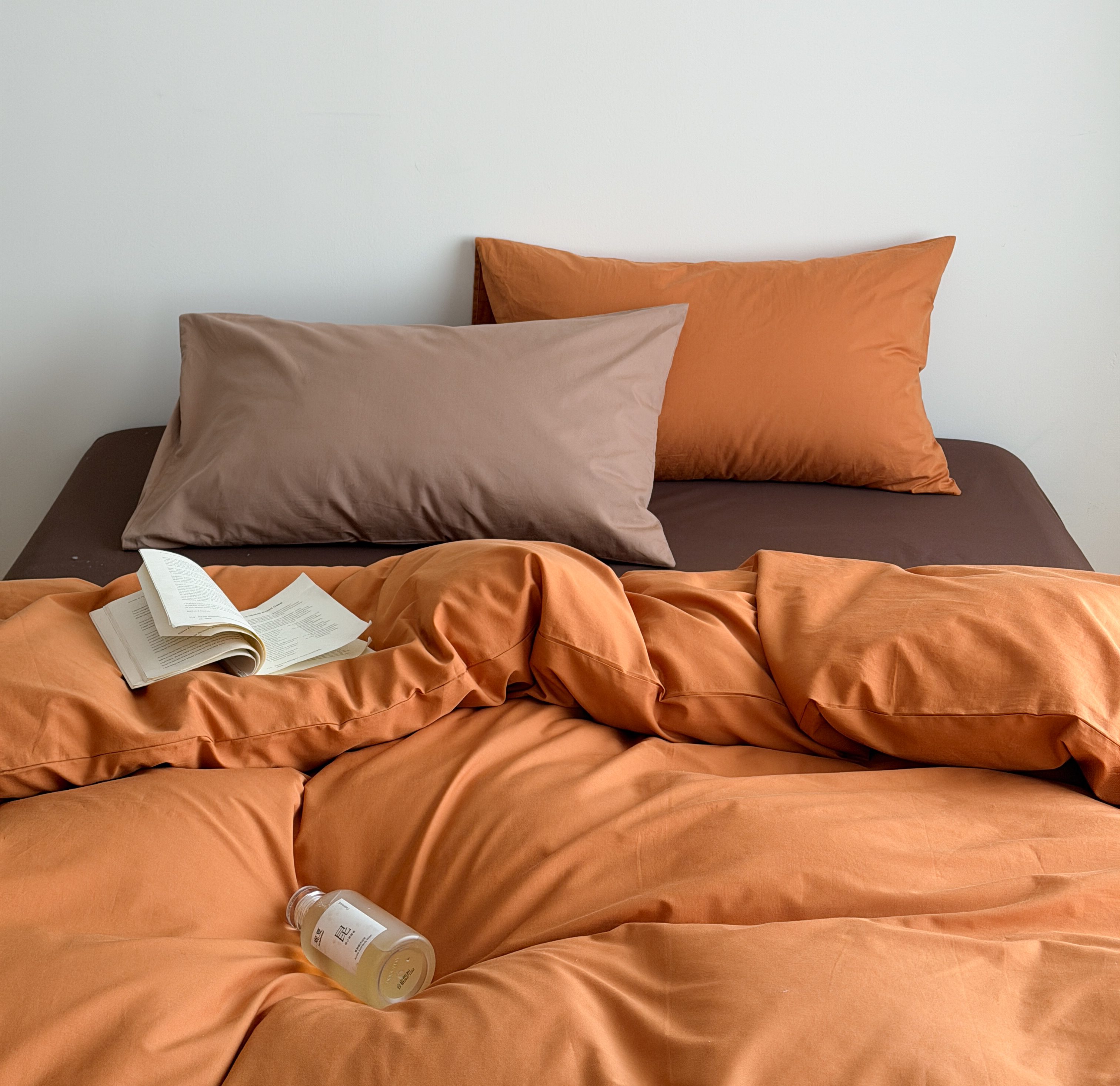 当前位置: 91家纺网 > 商品网购 > 床品套件 > 四件套 > 全棉普通四件套 > 蜜宿 2026新款纯色混搭全棉纯棉40s水洗棉四件套 焦糖日落(枕套粉黑竖条+可可棕)