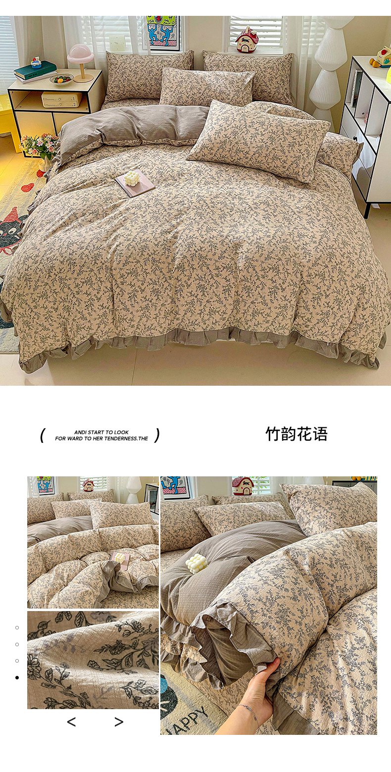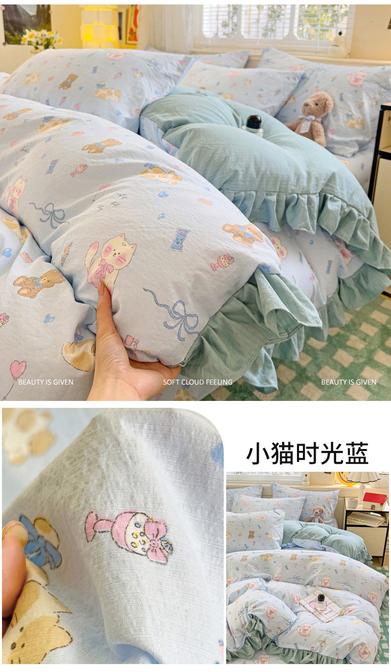 当前位置: 91家纺网 > 商品网购 > 床品套件 > 四件套 > 其它四件套 > 纽缦家纺 2026新款云感提花双层纱韩版床单三件套四件套 切块草莓猫