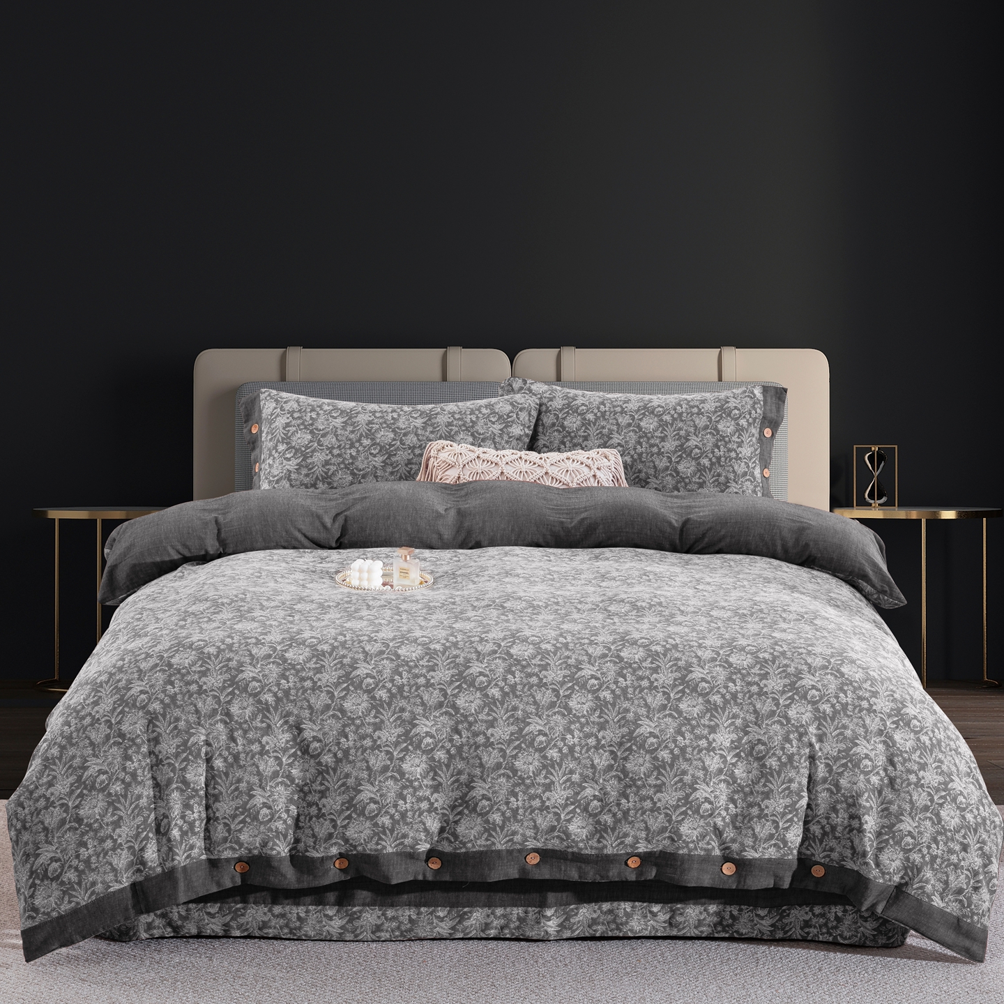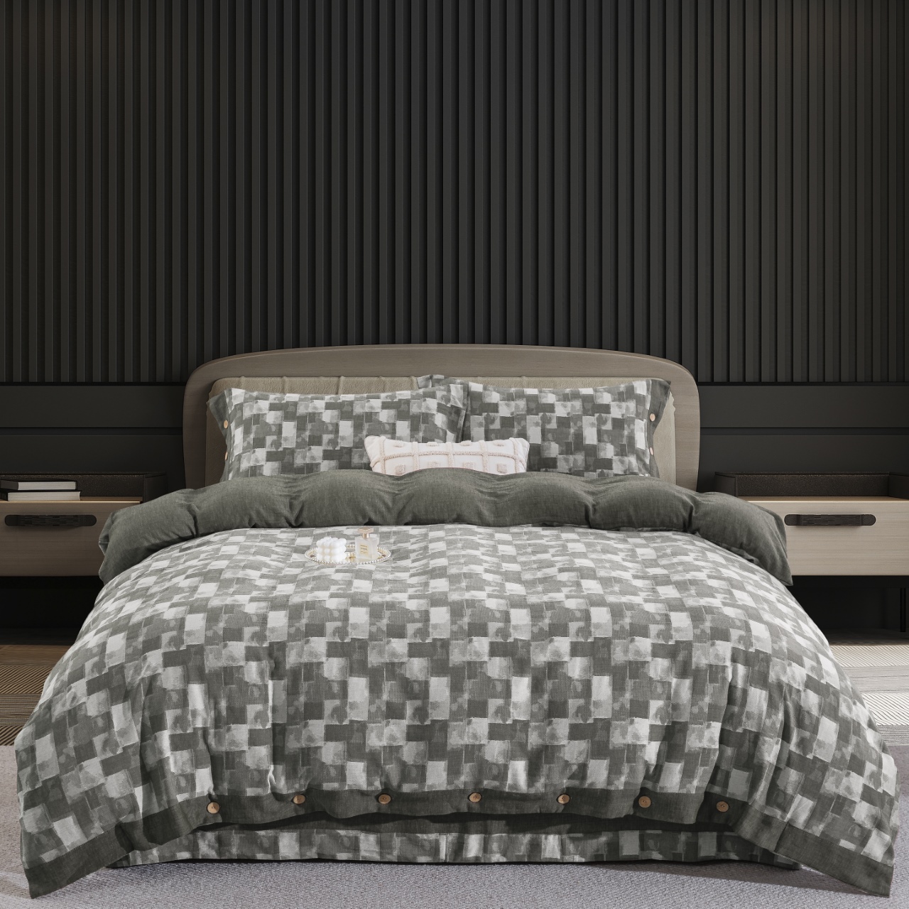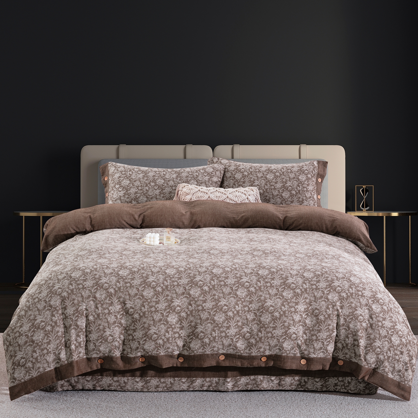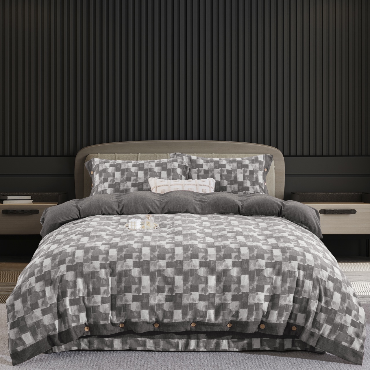 (总)双层纱家居 2026新款全棉色织提花纽扣款四件套