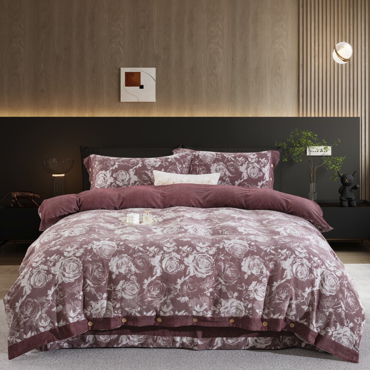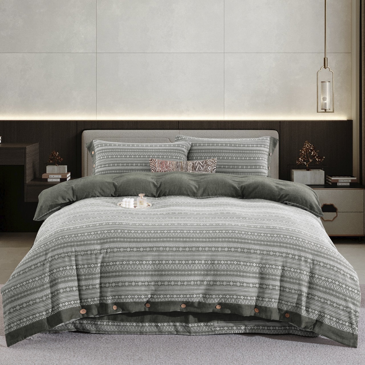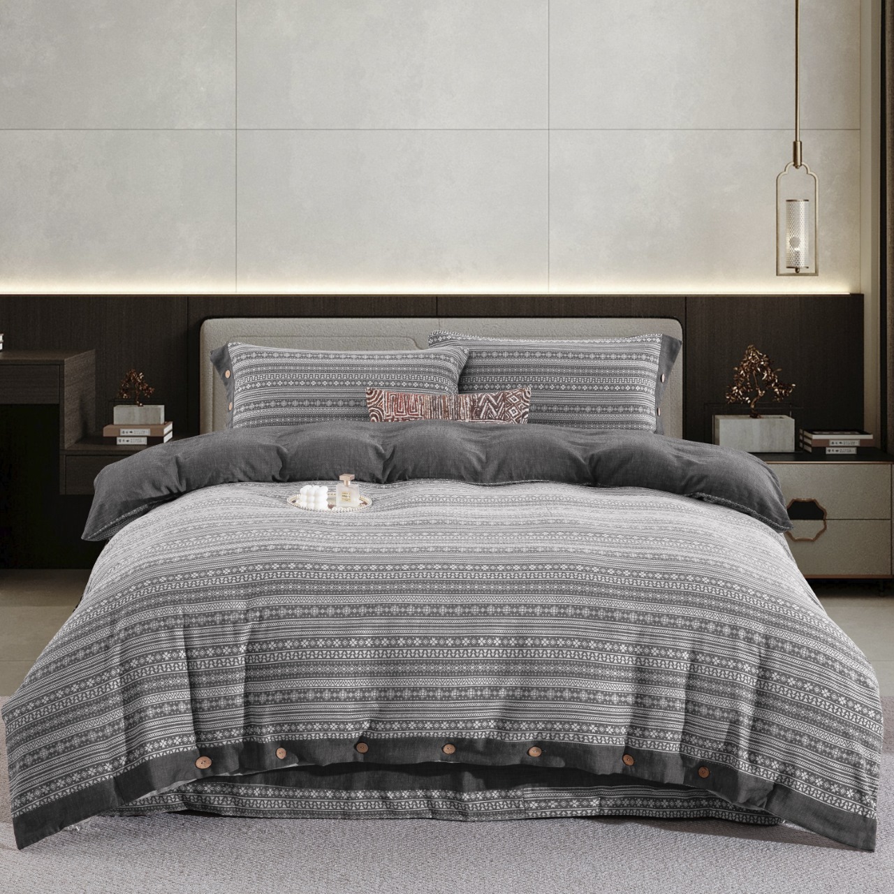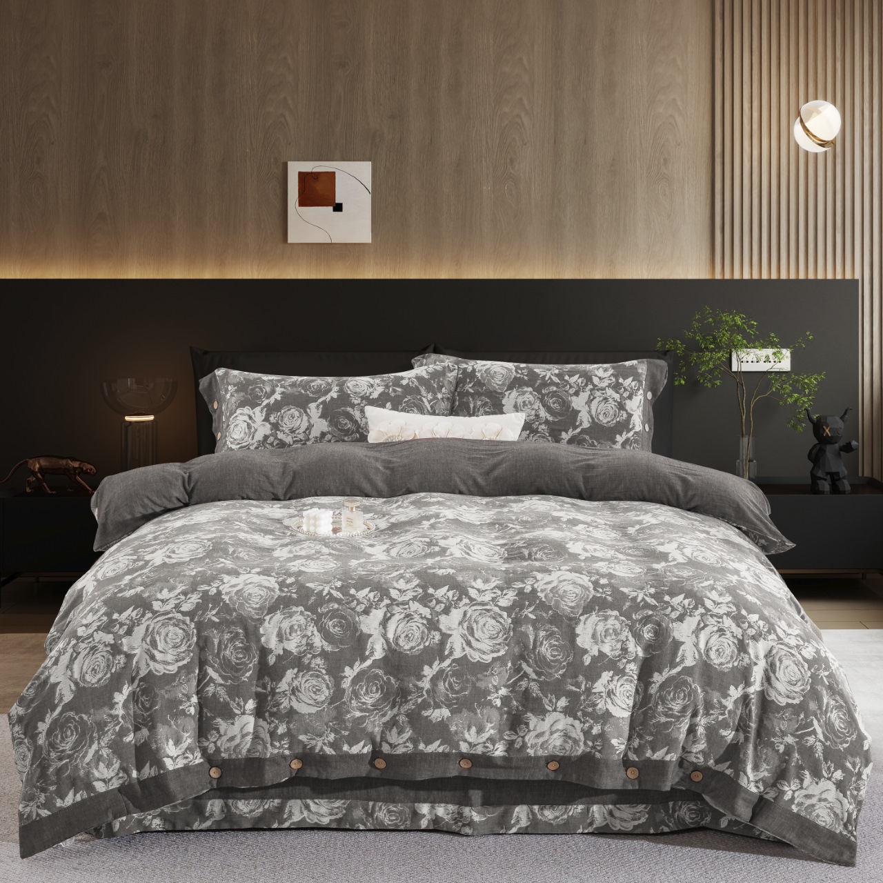 (总)双层纱家居 2026新款全棉色织提花纽扣款四件套