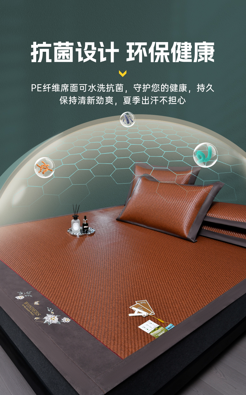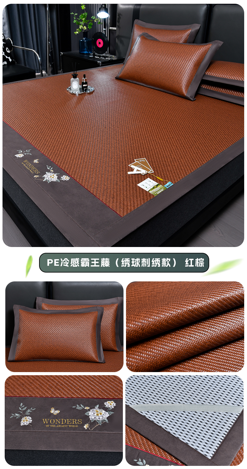 当前位置: 91家纺网 > 商品网购 > 床上用品 > 凉席 > 藤席 > 小牛席业 2026新款PE冷感霸王藤系列(绣球花开刺绣款)凉席藤席冰藤席冰丝席可机洗凉感冰丝席豆豆席PE霸王藤 红棕
