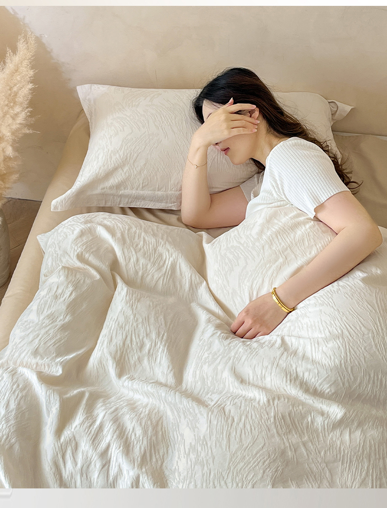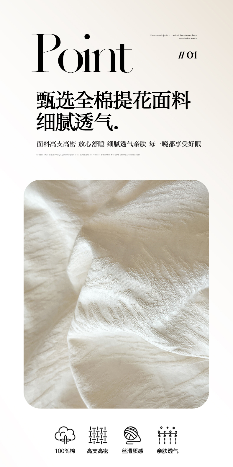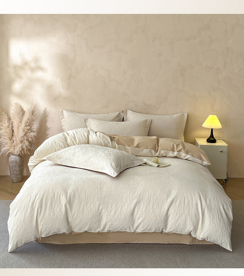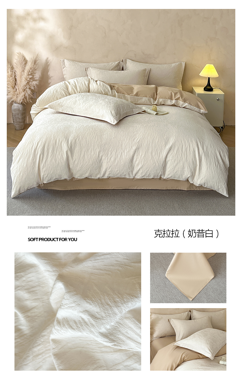 当前位置: 91家纺网 > 商品网购 > 床品套件 > 四件套 > 全棉普通四件套 > 火麒麟家纺 2026新款A类全棉纯棉水洗立体浮雕提花纯棉四件套 克拉拉(奶昔白)