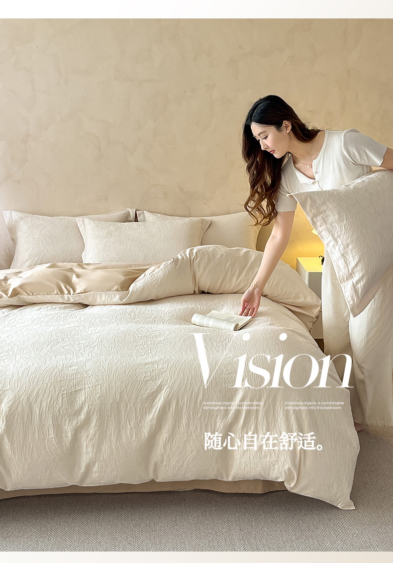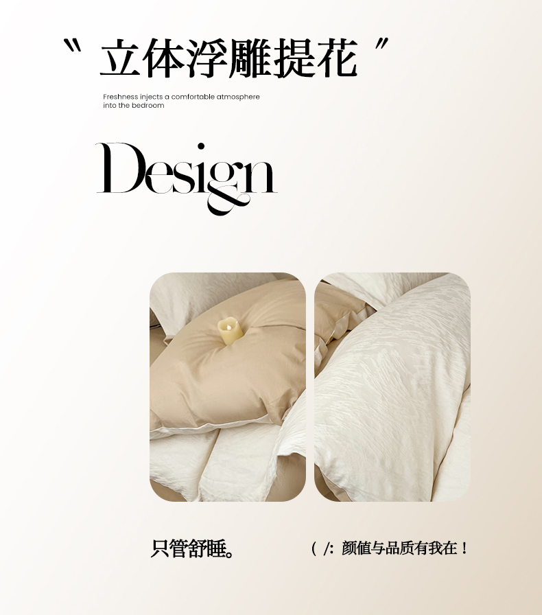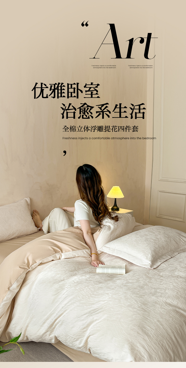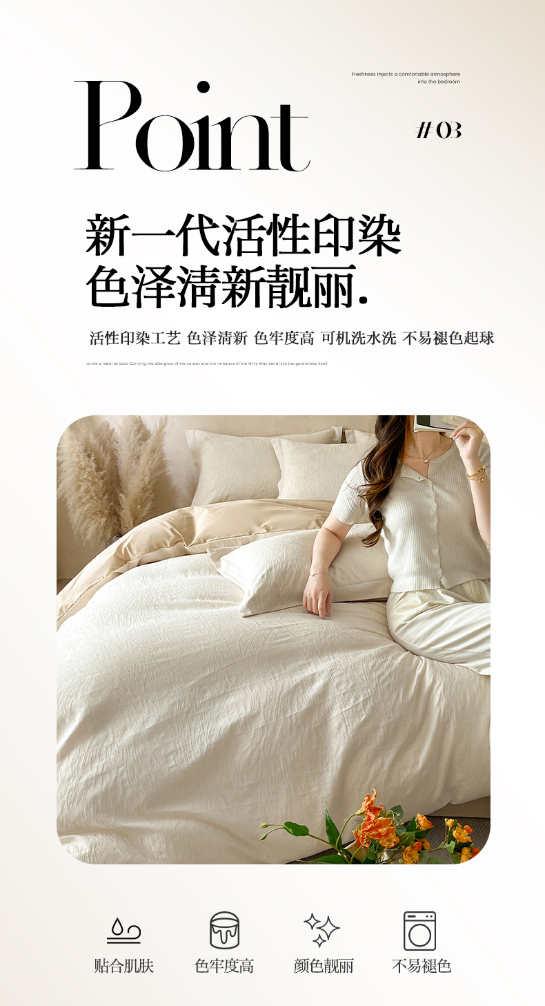 当前位置: 91家纺网 > 商品网购 > 床品套件 > 四件套 > 全棉普通四件套 > 火麒麟家纺 2026新款A类全棉纯棉水洗立体浮雕提花纯棉四件套 克拉拉(奶昔白)