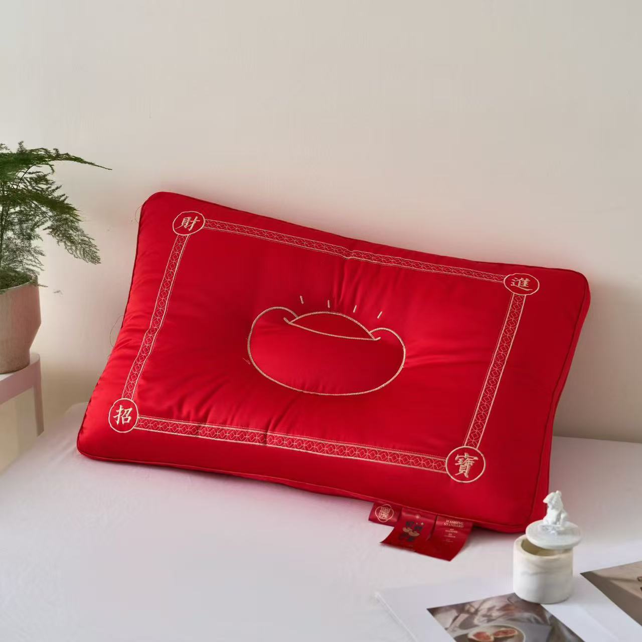 云熙枕业 2026新款招财进宝护颈枕羽丝枕枕头枕芯 大红色