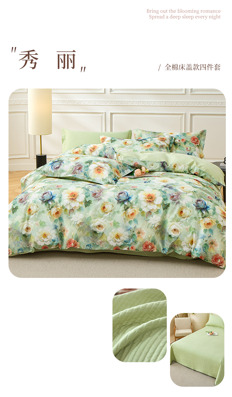 当前位置: 91家纺网 > 商品网购 > 床品套件 > 四件套 > 全棉普通四件套 > 元元家居(元元被业) 2026新款全棉纯棉13372床盖款四件套-印花款 知夏