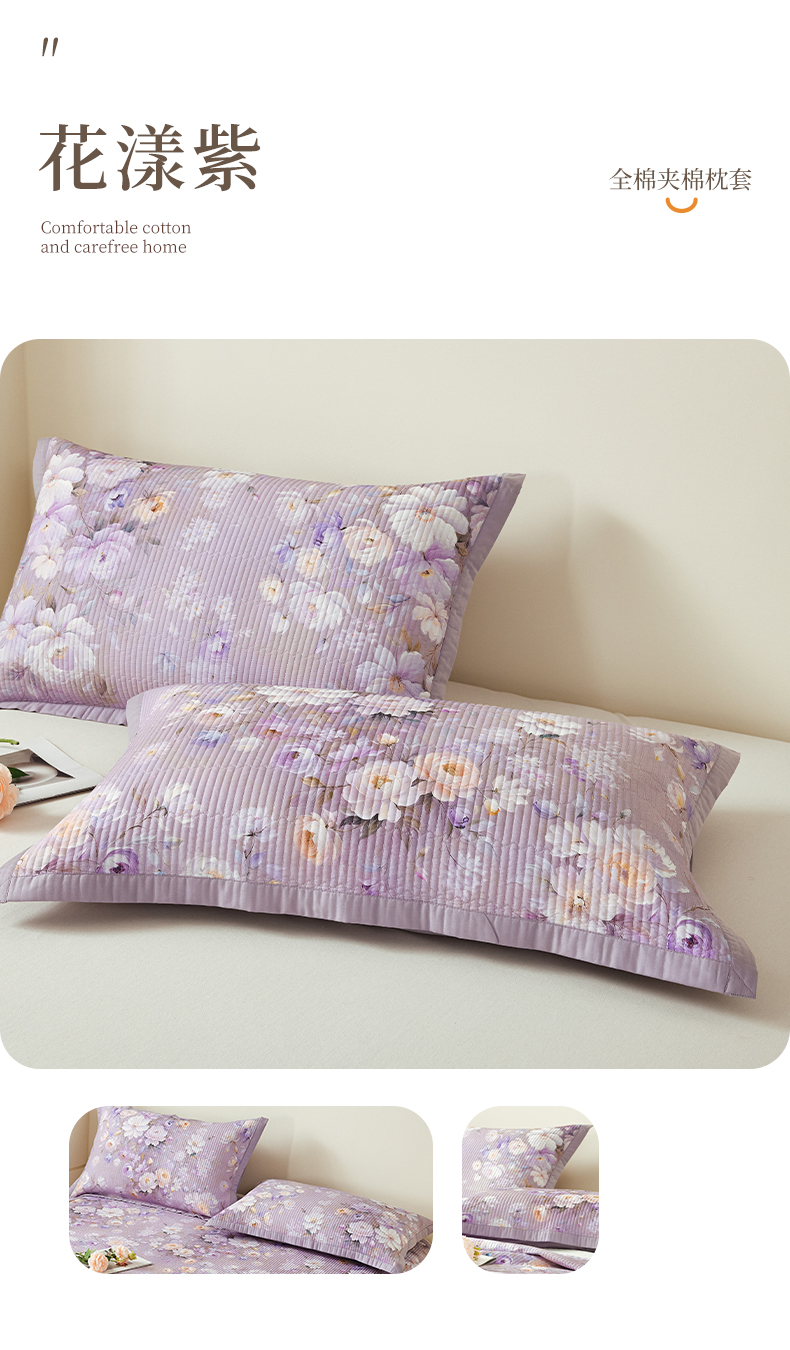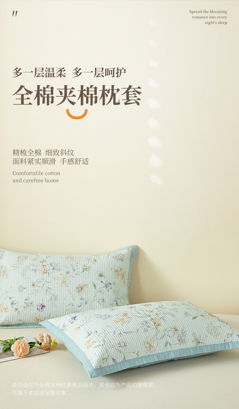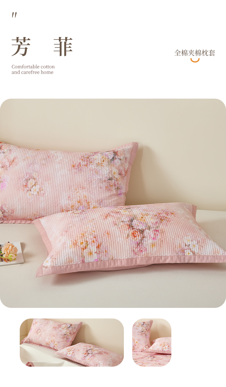 商品名称:元元家居(元元被业) 2026新款全棉纯棉13372系列夹棉枕套单件枕套单品单枕套-印花款 芳菲