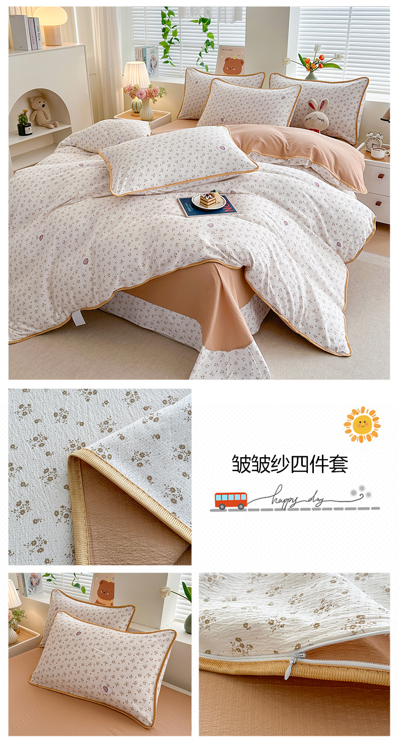 (总)爱洛家纺 2026新款印花皱皱纱四件套,粉黛草影,焦糖奶犬,咖调心韵,咖调星絮,林间粉玫,莫奈青园,墨蓝星絮,墨棕影花,奶糖花小兔,暖棕枝雪,青粉漫野,青岚细叶,清溪落英,秋栗拾光,深野碎樱,素低彩语,雾灰蝶语,雾灰小爱心,雾灰樱落,雾蓝结语,雾蓝青序,雾蓝水波纹,云间蓝雾草,云绒格间,云隙青叶,云紫轻花,紫雾星花,棕痕谍影,素墨蝶舞