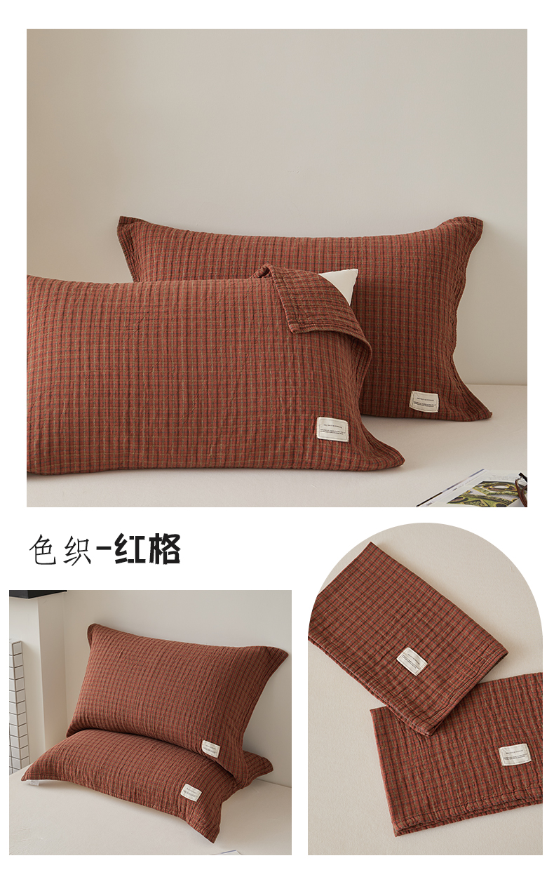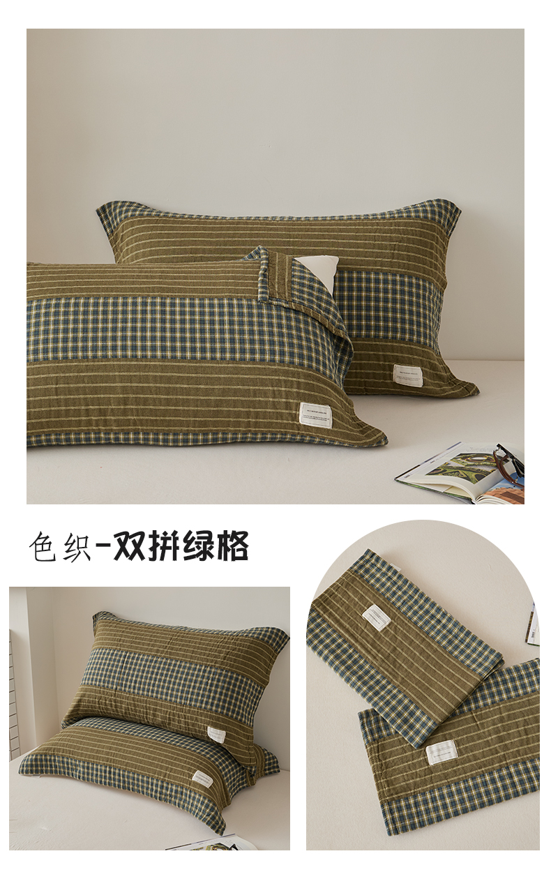 (总)百寐 2026百分百全棉A类色织枕巾52*75条纹格子美拉德色系纯棉吸汗枕巾风格二,色织 -米格,色织-红格,色织-蓝条,色织-绿格,色织-绿条,色织-浅绿格,色织-深咖格,色织-双拼绿格,色织-双拼米格,组合图(仅供展示不可下单)