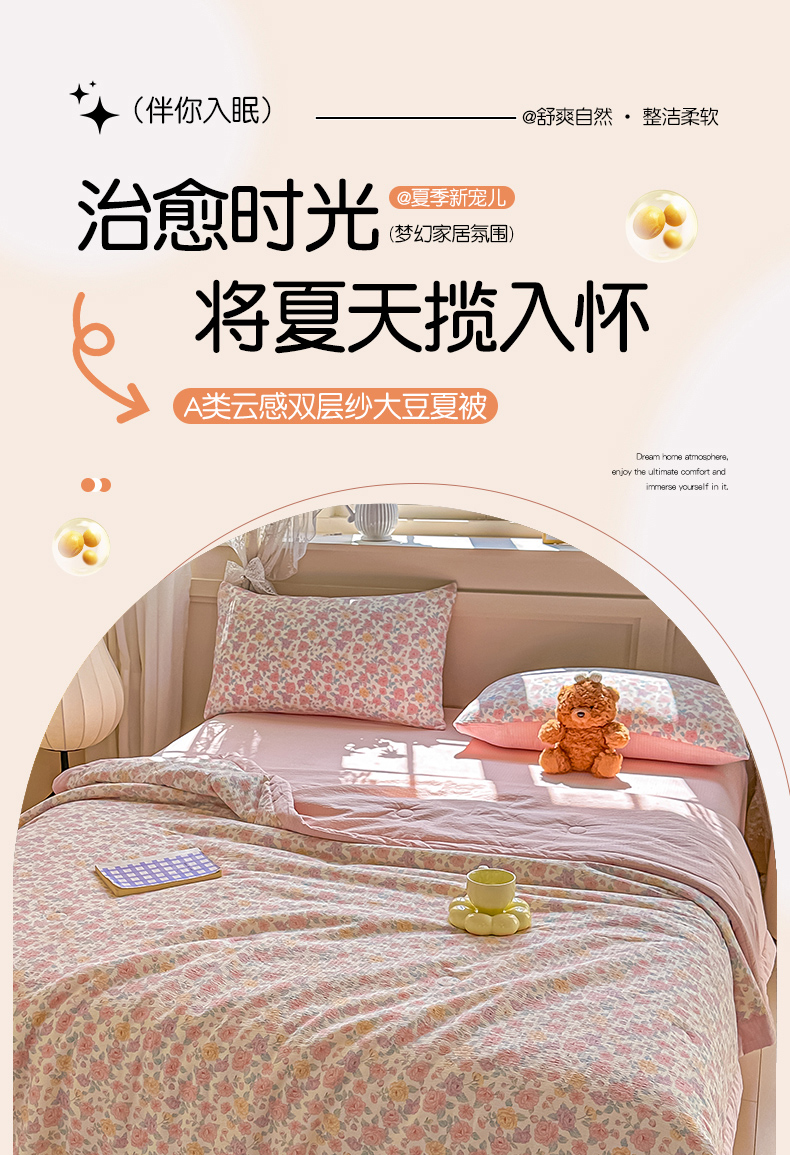 商品名称:(总)秋泽家纺 2026新款A类云感双层纱大豆纤维夏凉被空调被小清新印花夏被