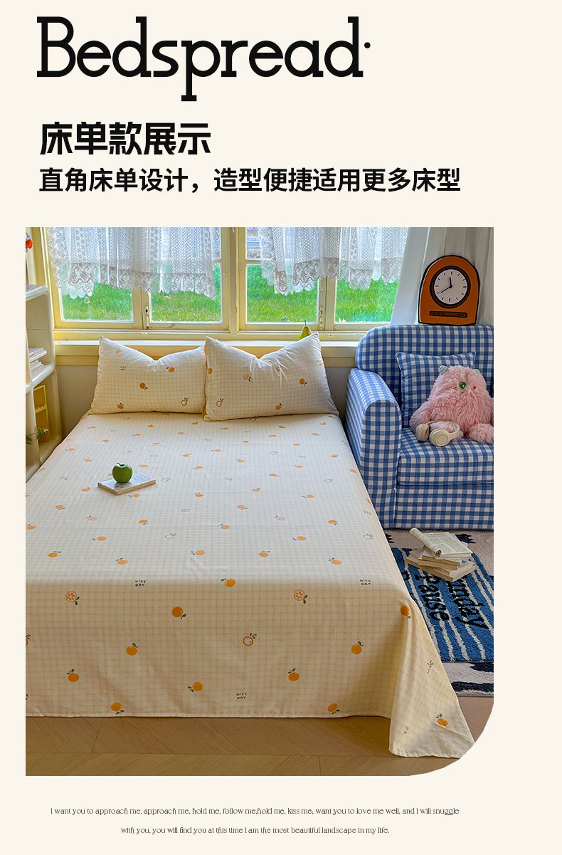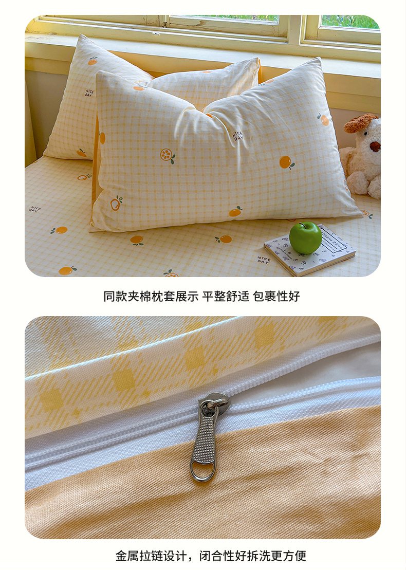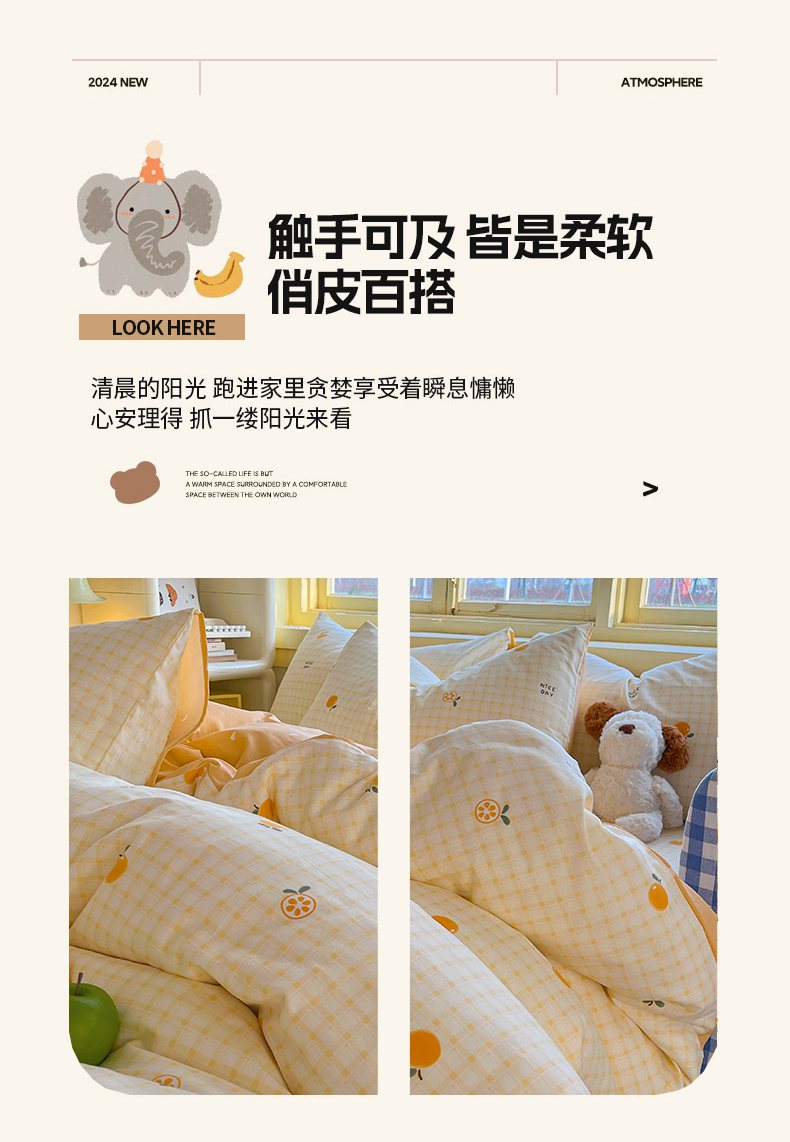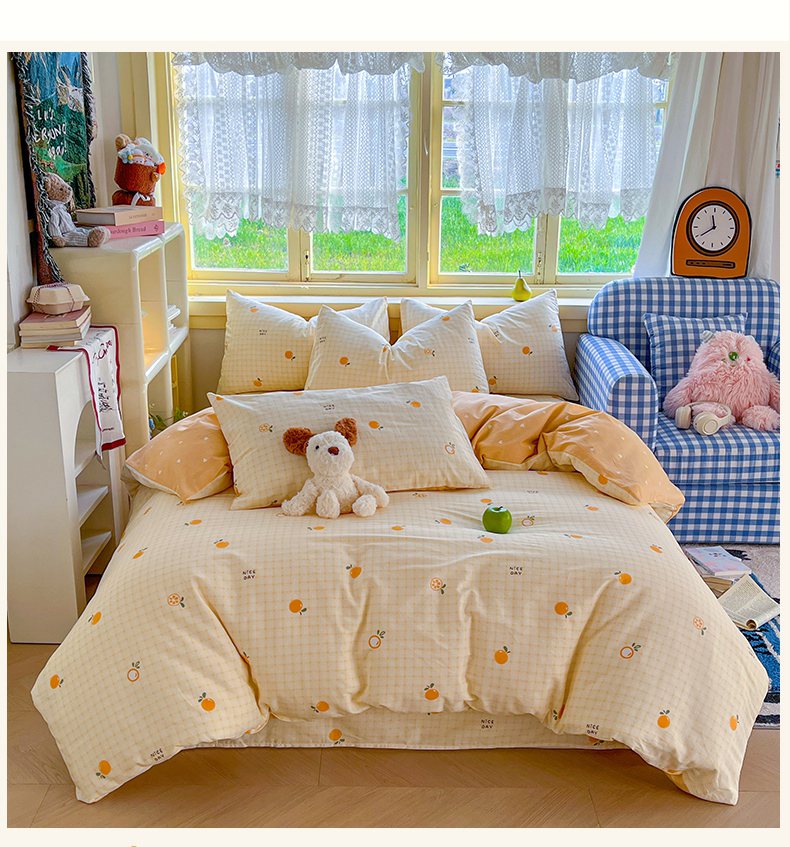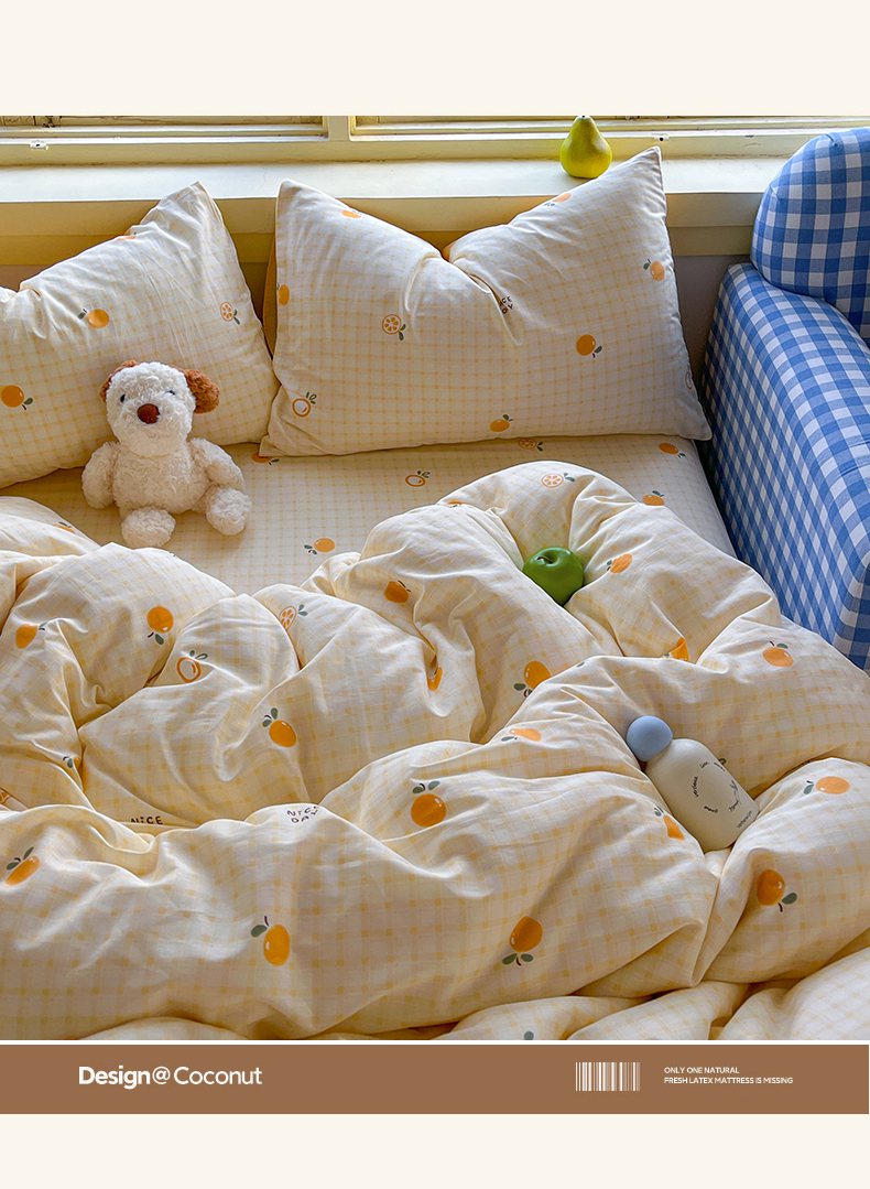 商品名称:简约家纺 2026新款全棉斜纹12868床笠系列 橘子格