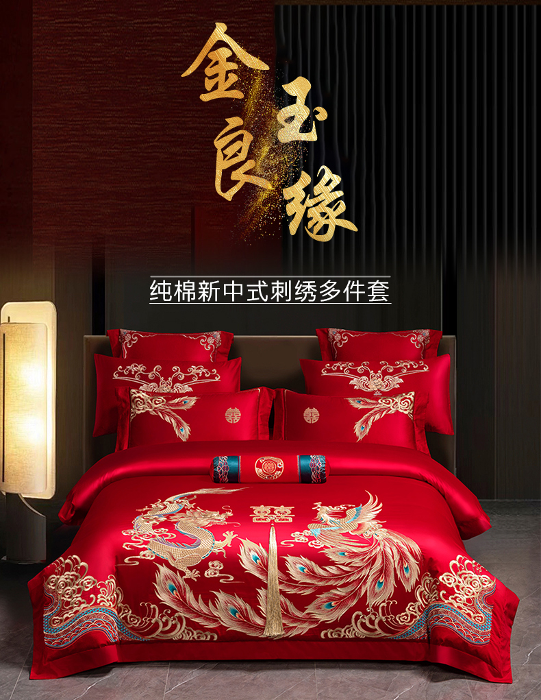 当前位置: 91家纺网 > 商品网购 > 床品套件 > 四件套 > 婚庆四件套 > 博之洋婚庆 2026新款全棉长绒棉刺绣婚庆四件套多件套 金玉良缘