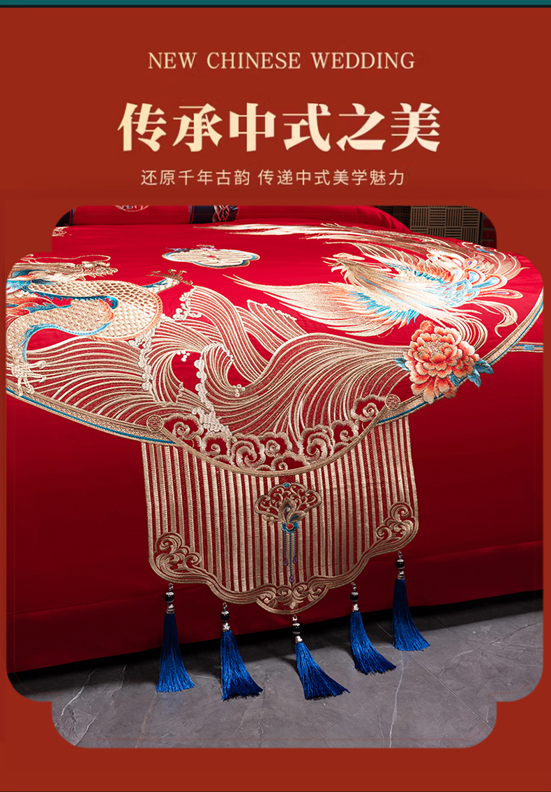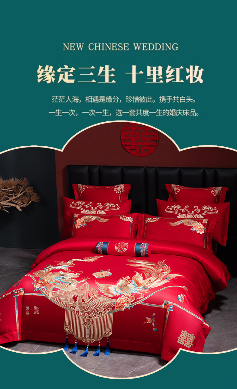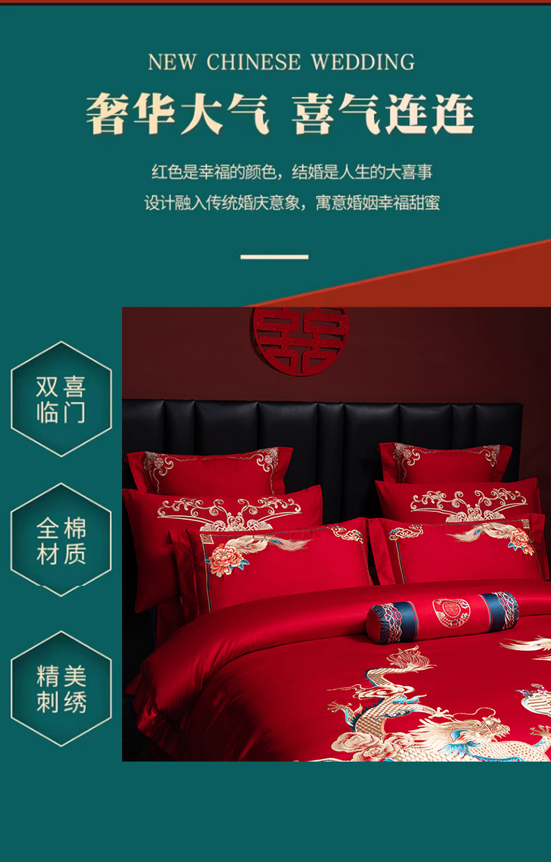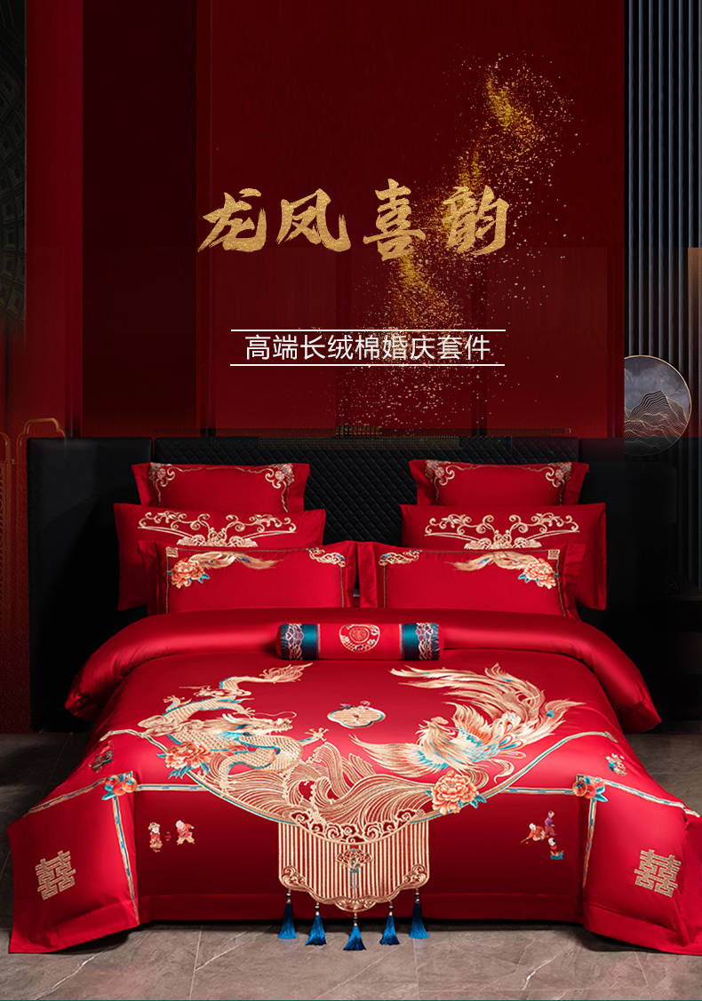 当前位置: 91家纺网 > 商品网购 > 床品套件 > 四件套 > 婚庆四件套 > 博之洋婚庆 2026新款全棉长绒棉刺绣婚庆四件套多件套 龙凤喜韵