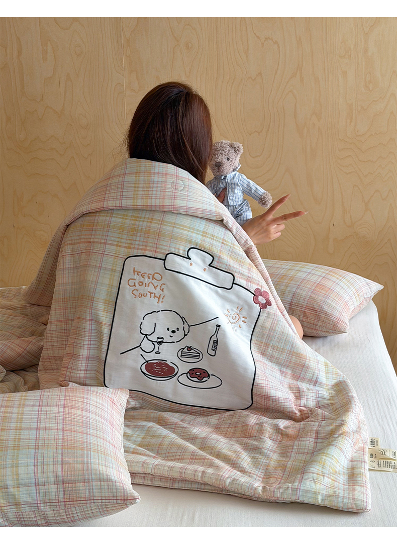 (总)一加一 2026新款全棉双层纱刺绣大豆夏被-棉纱萌趣,狗狗乐园,甜梦乐园,小象乐园,组合图仅供参考