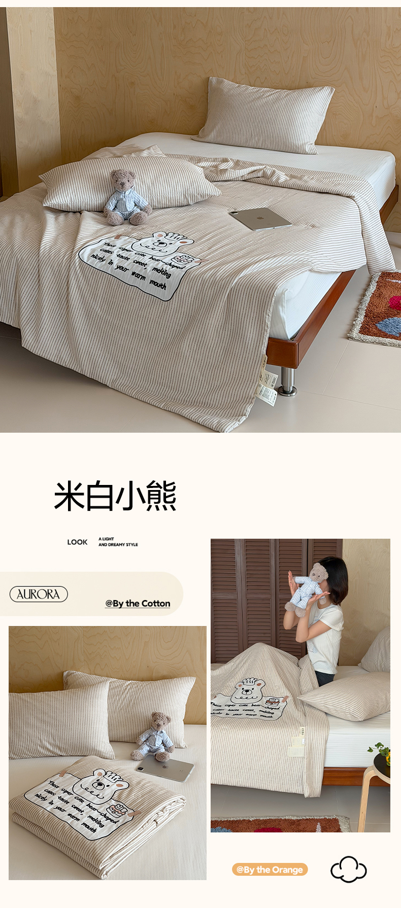 商品名称:一加一 2026新款全棉纯棉双层纱贴布绣大豆夏被夏凉被空调被-格格乐园 粉彩早餐熊