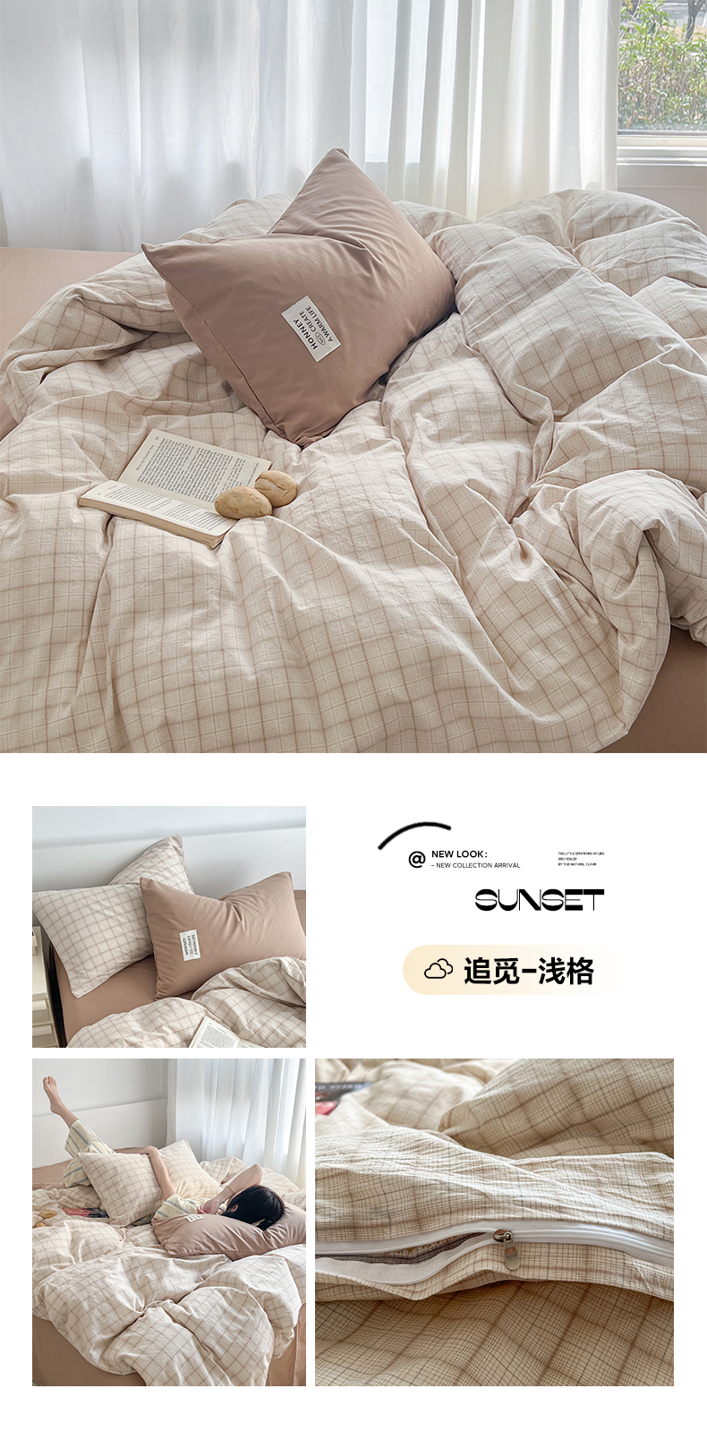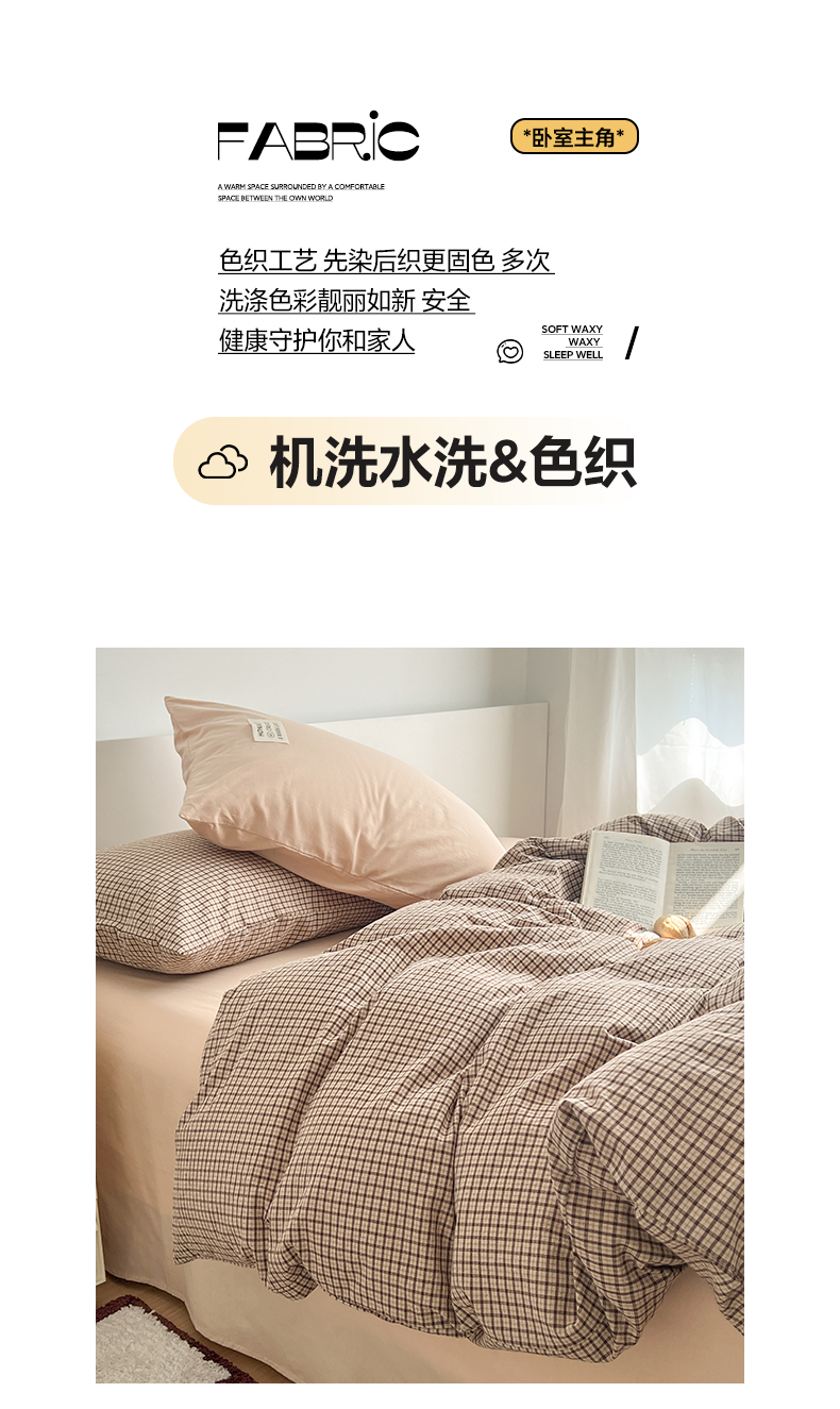 当前位置: 91家纺网 > 商品网购 > 床品套件 > 四件套 > 全棉普通四件套 > 早晨家纺 2026新款INS博主风A类全棉纯棉色织水洗棉格子四件套 追觅-咖格