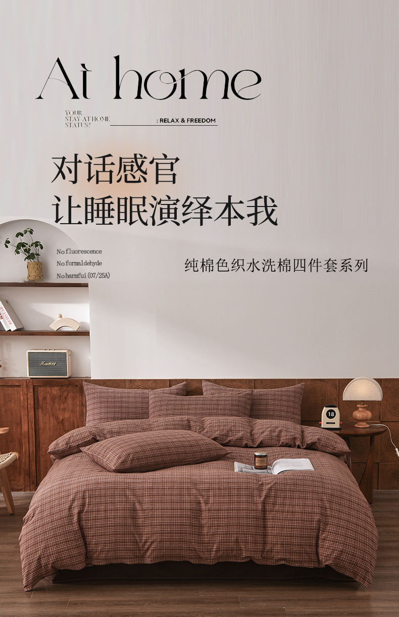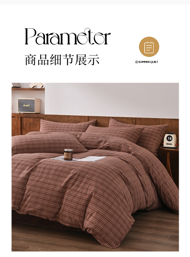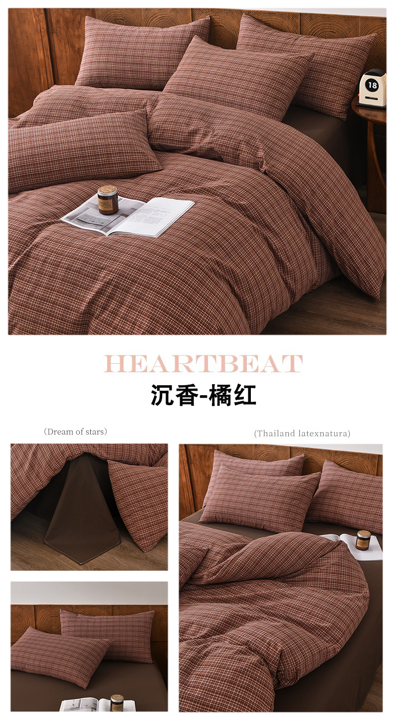 (总)金艾草 2026春夏新款全棉纯棉色织水洗棉床盖四件套,关山月-灰,沉香-褐色,沉香-橘红,沉香-咖色,芳菲-咖,关山月-咖,条纹-粉色,条纹-蓝色