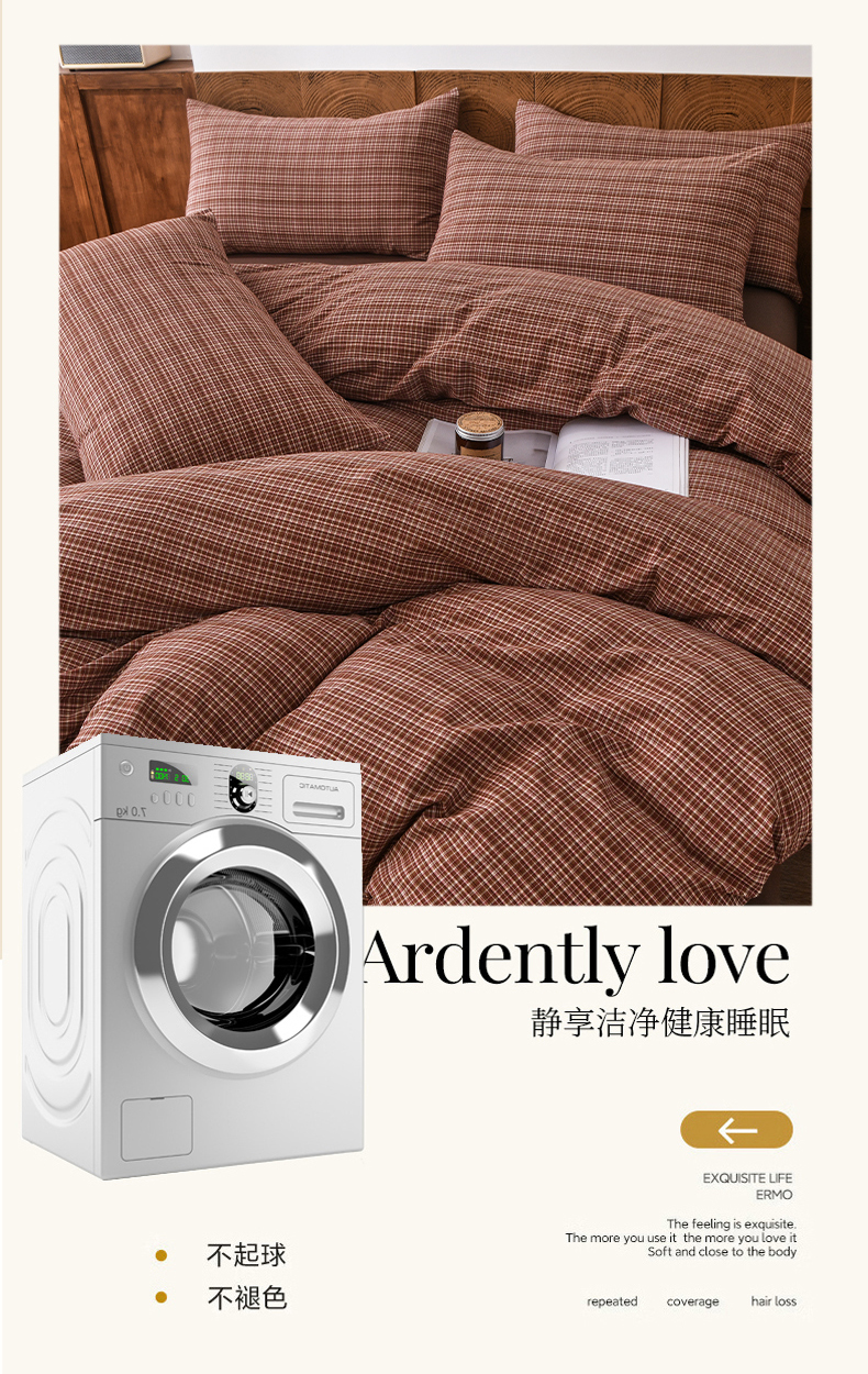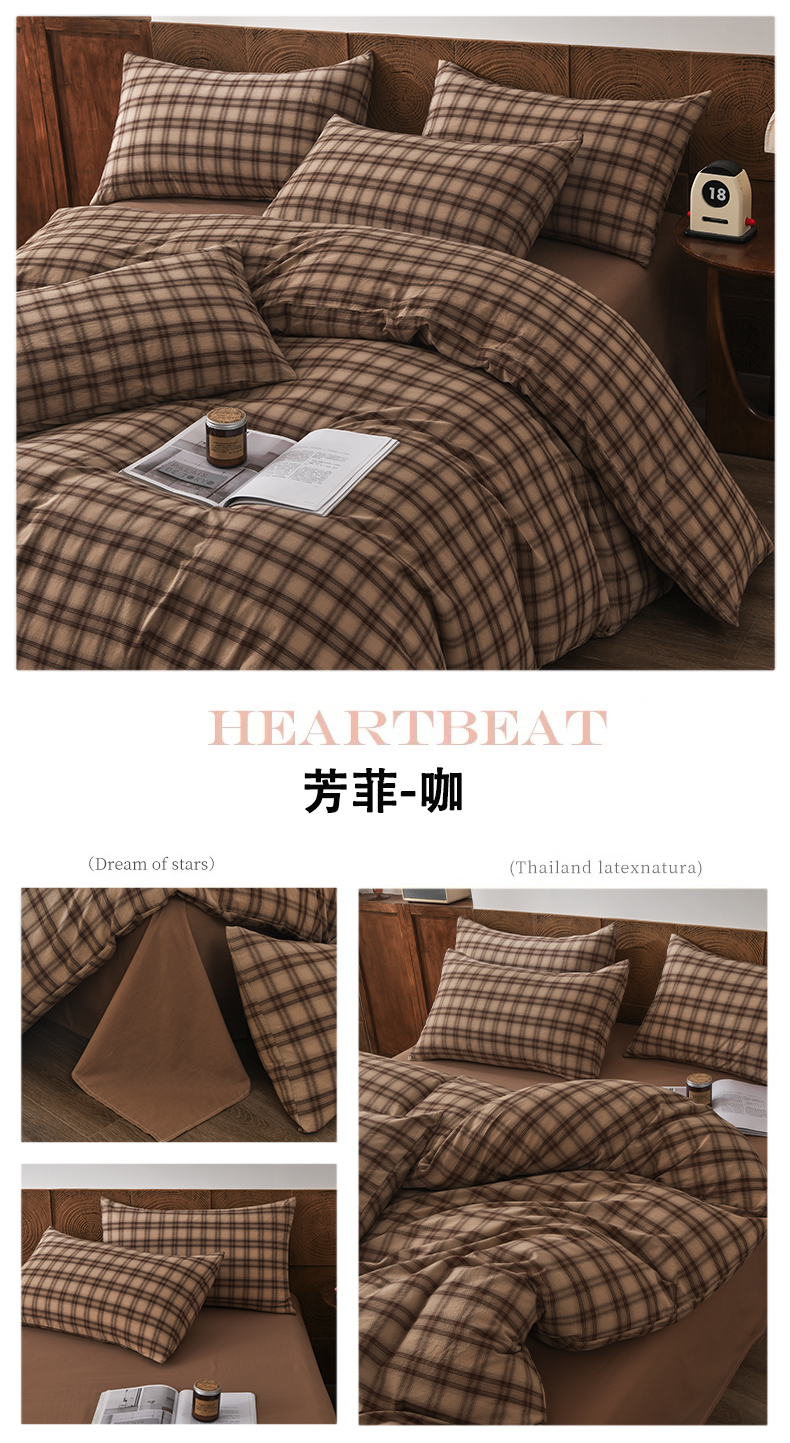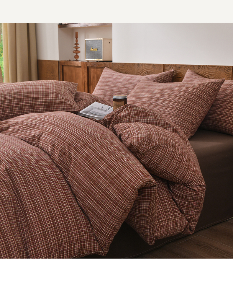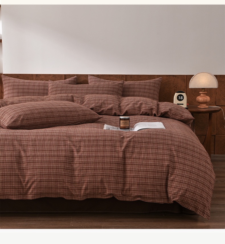 (总)金艾草 2026春夏新款全棉纯棉色织水洗棉床盖四件套,关山月-灰,沉香-褐色,沉香-橘红,沉香-咖色,芳菲-咖,关山月-咖,条纹-粉色,条纹-蓝色