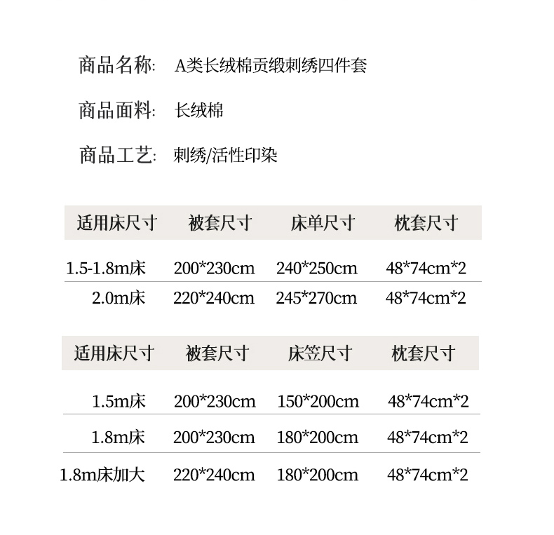 商品名称:(总)星蕴家纺 2026新款贡缎长绒棉四件套-简爱