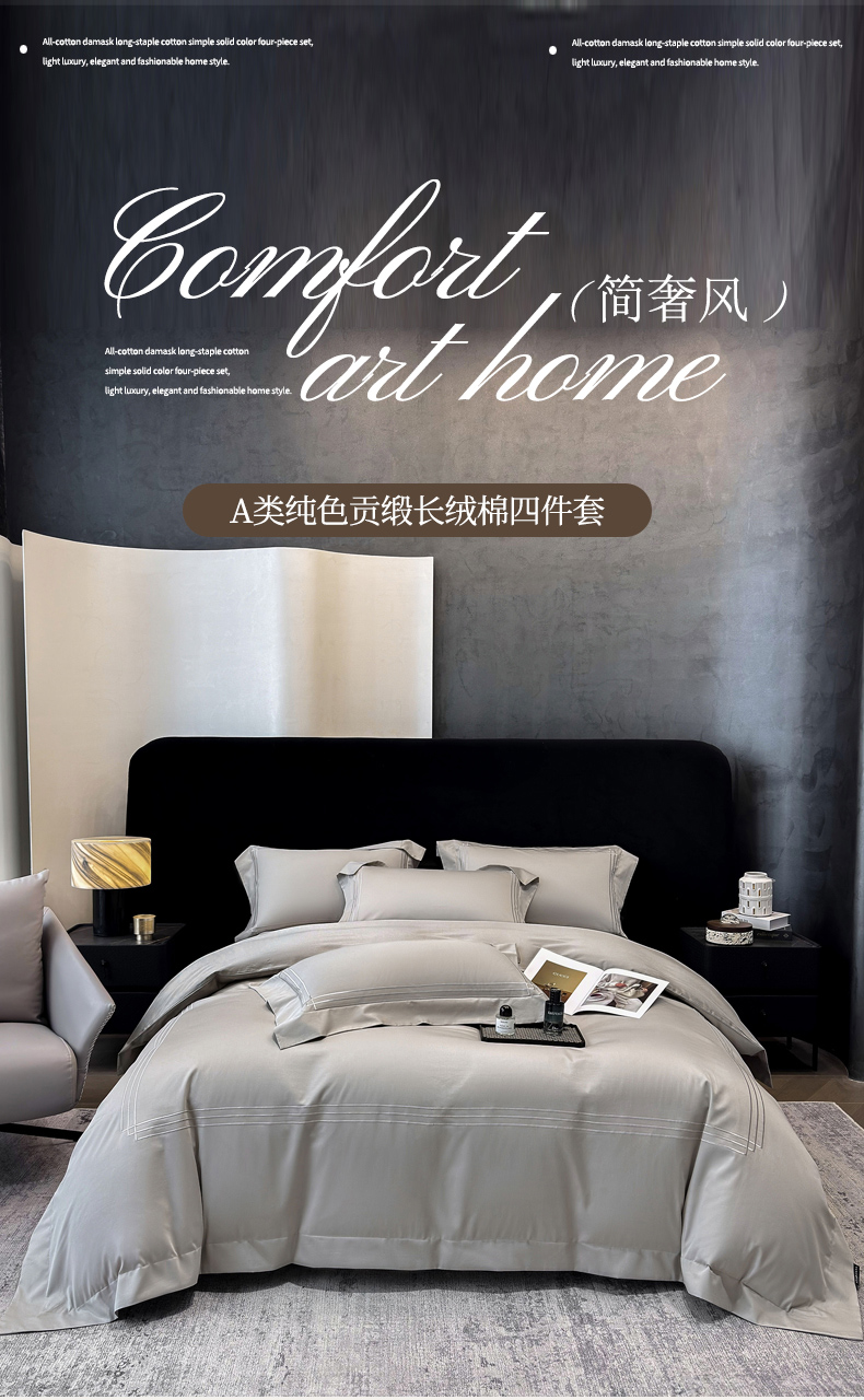(总)星蕴家纺 2026新款贡缎长绒棉四件套-简爱,简爱-珍珠白,简爱-高级灰,简爱-香槟金,简爱-云山蓝,简爱-可可粉