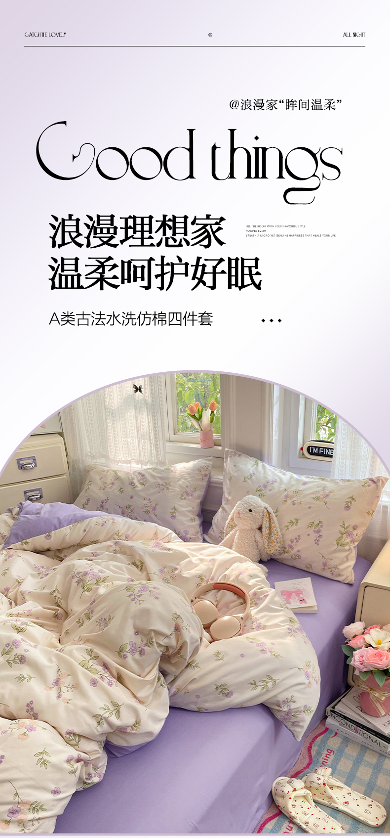 当前位置: 91家纺网 > 商品网购 > 床品套件 > 四件套 > 水洗棉四件套 > 瑞禾家纺 2026新款古法水洗四件套下载文件包含买家秀 紫雾花町