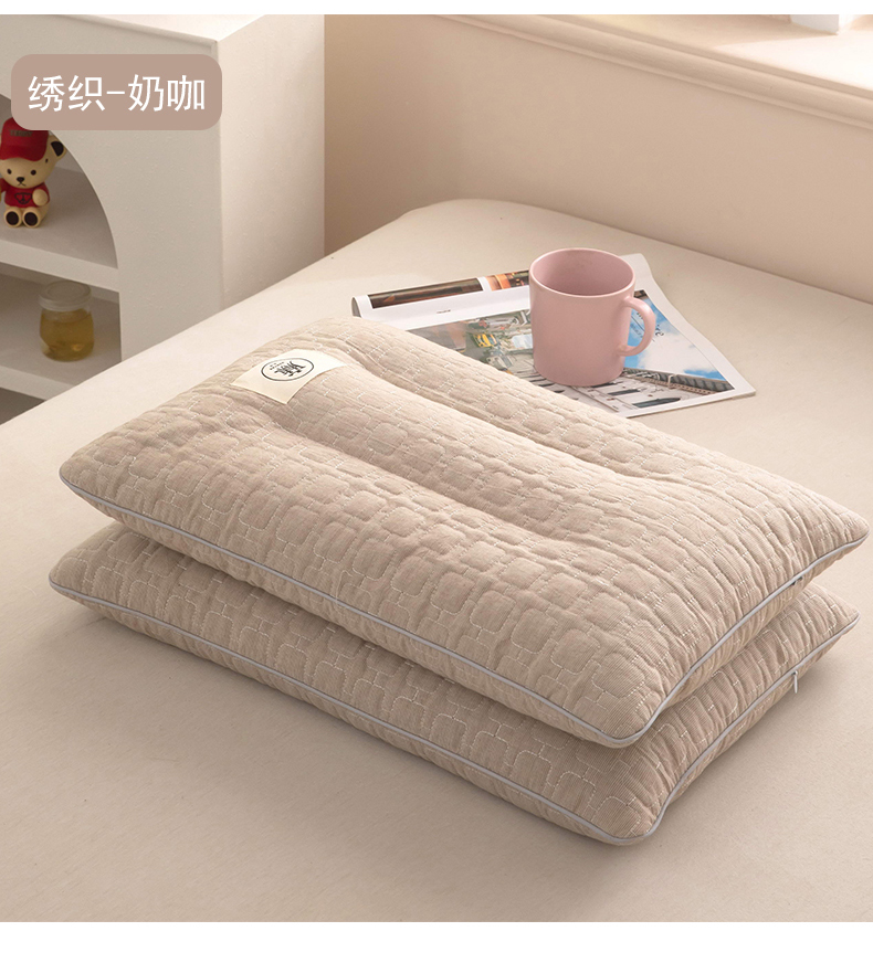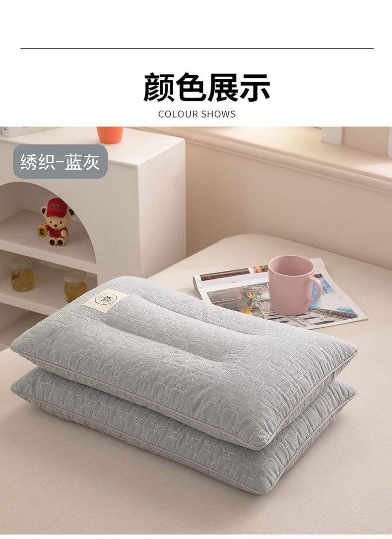 (总)梦莱家纺 2026新款水洗棉麻荞麦枕枕头枕芯-绣织,绣织-蓝灰,绣织-绿色,绣织-奶咖,组合图仅供展示不可下单
