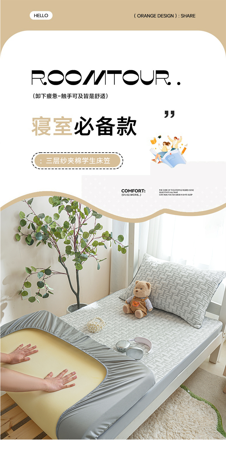 商品名称:(总)柏薇 2026新款A类三层纱夹棉学生床笠