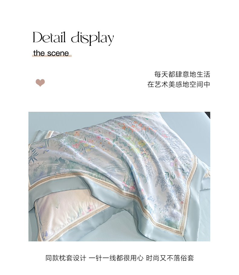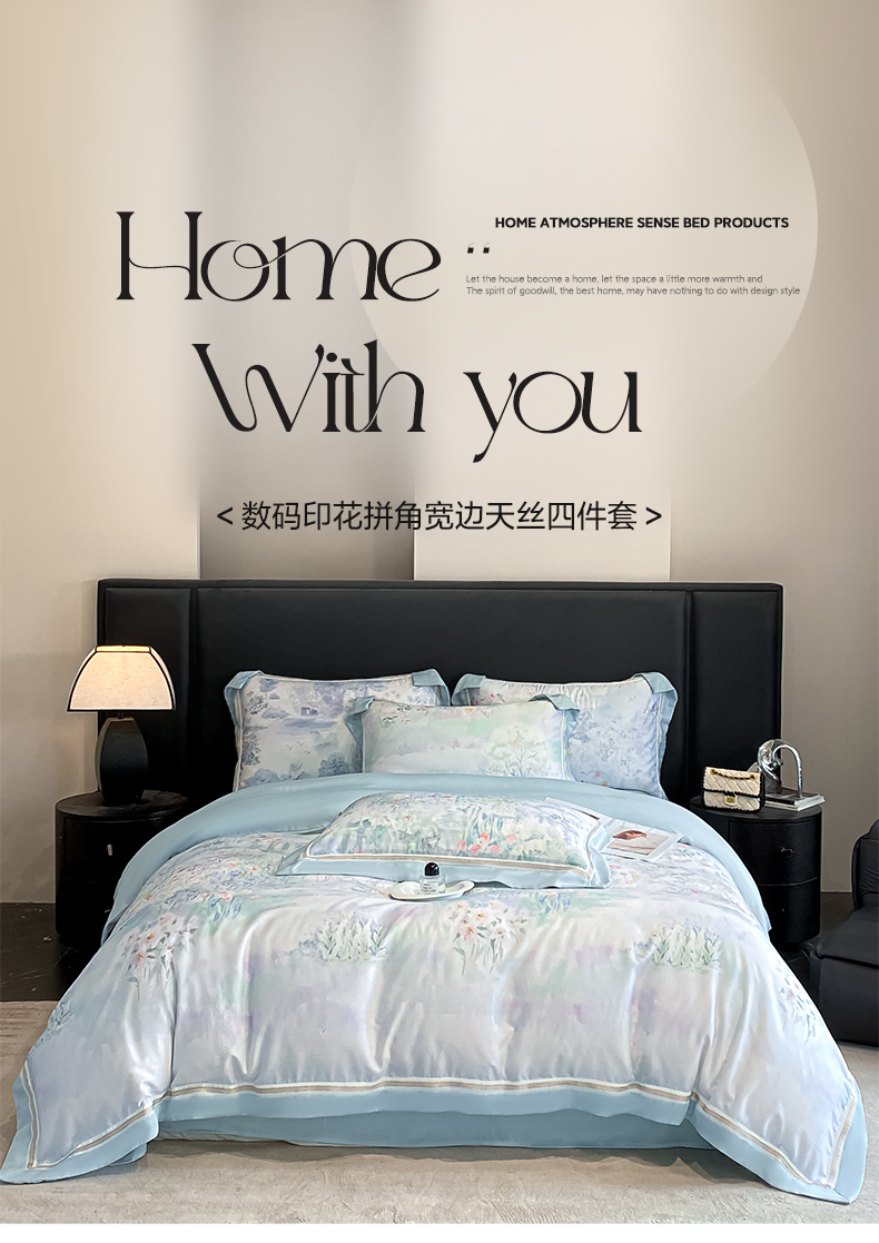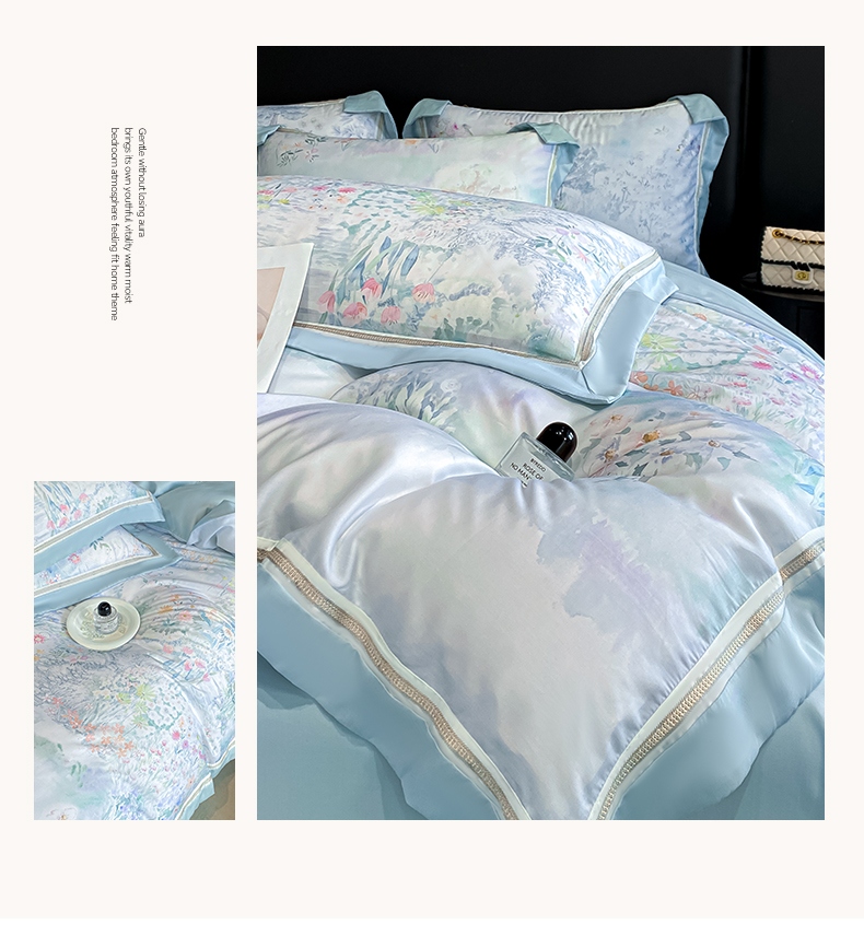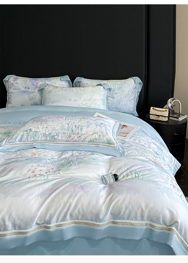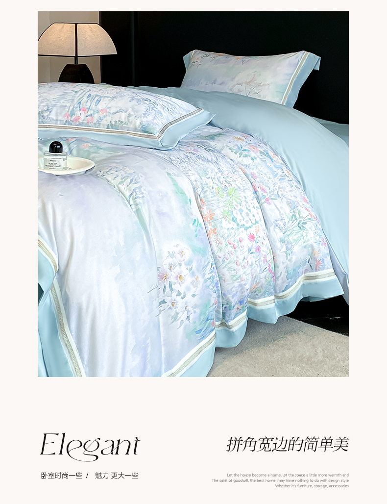 (总)博纳家纺 2026新款100%莱赛尔天丝四件套宽边拼角绣花工艺数码印花田园风轻奢凉感四件套(礼盒装),花春城,缤纷夏日,花枝嫣然,夕颜