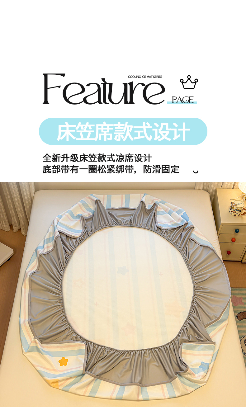 商品名称:懒猫家纺 2026新款大版卡通凉感冰丝床笠款凉席席子 床笠席-甜宠小猫