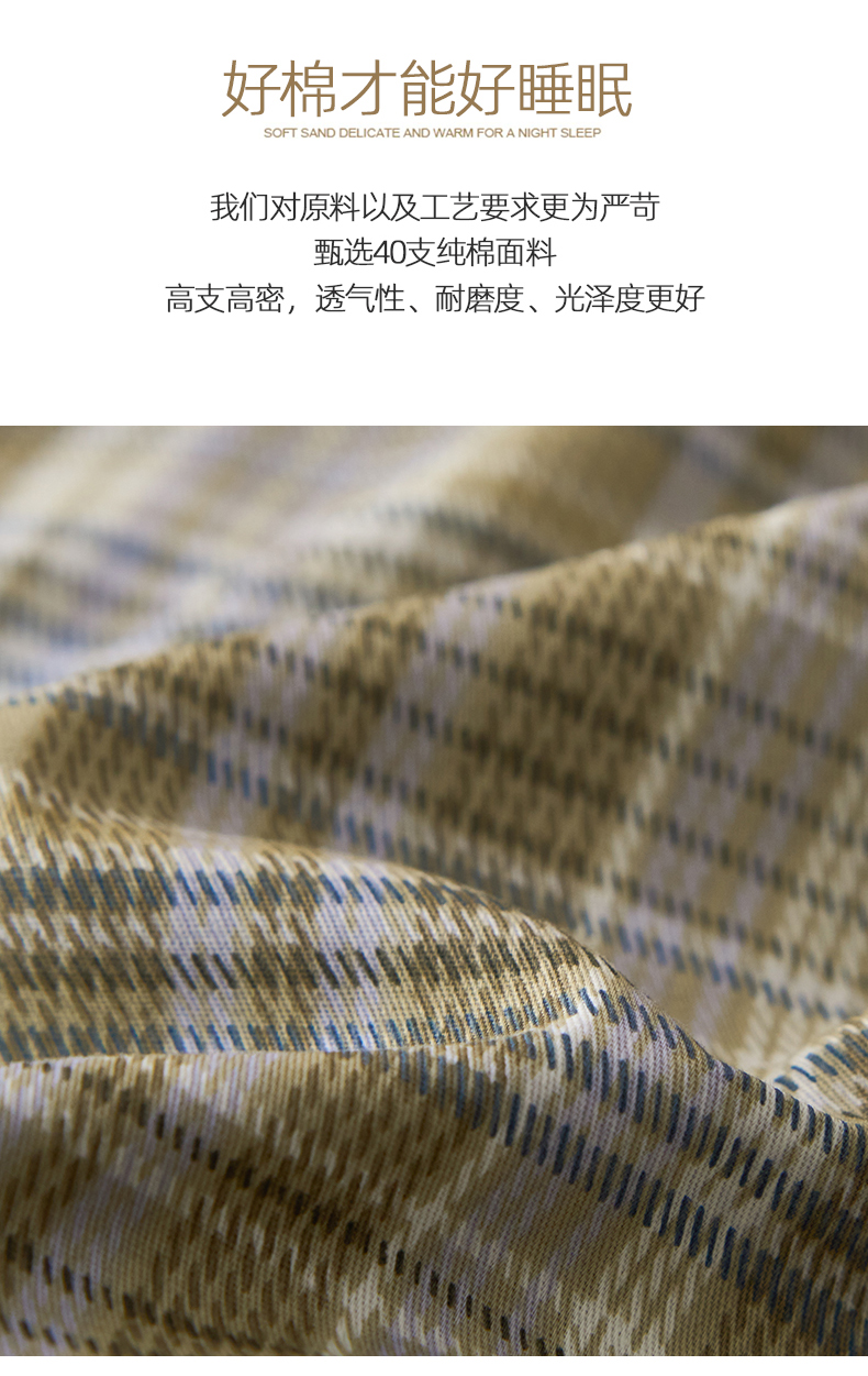 商品名称:女子家纺 2026新款全棉13070简约格子系列四件套 抹茶格