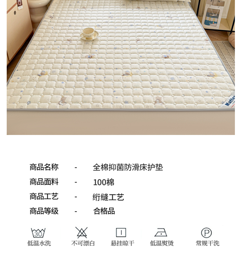 (总)丽诺床垫 2024新款升级款全棉13372抗菌防滑床护垫,灰色,玉色 ,卡其色 ,秋蓝,白色