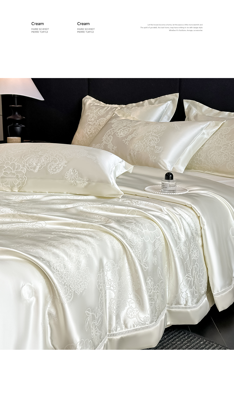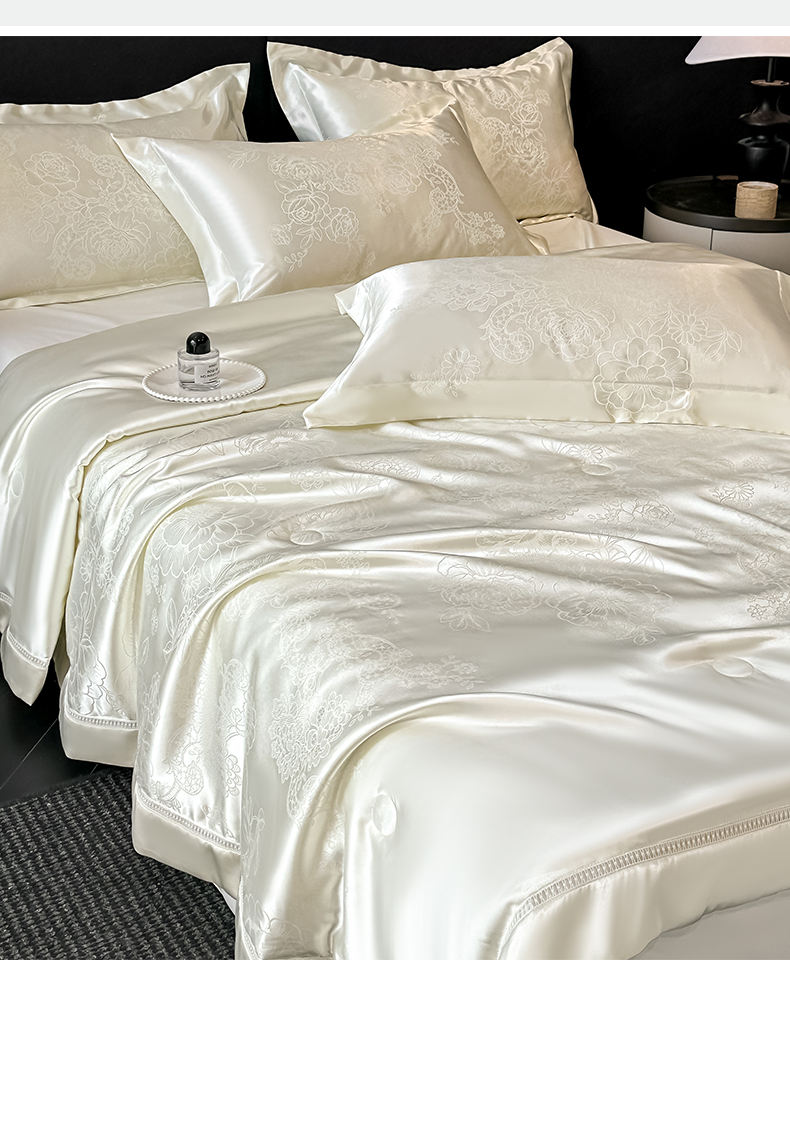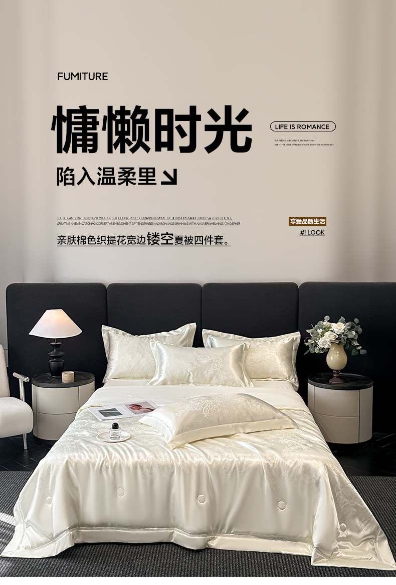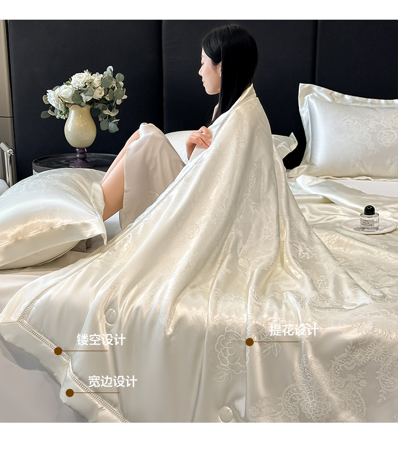 当前位置: 91家纺网 > 商品网购 > 床品套件 > 四件套 > 夏被四件套 > 博纳家纺 2026新款轻奢高端色织定位提花拼角镂空款夏被四件套冰丝凉感夏被四件套繁花魅影 象牙白