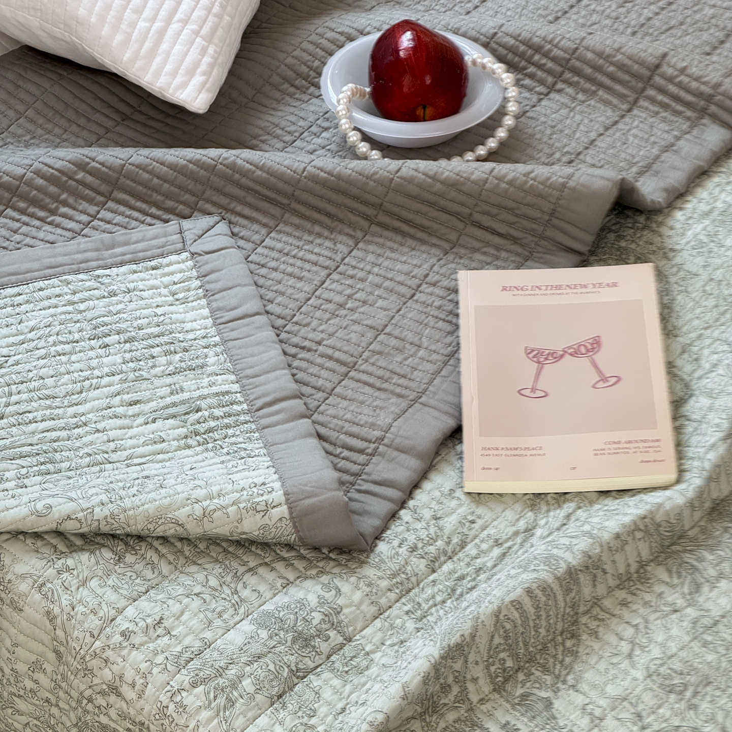 (总)床盖工厂店 2026新款双面水洗全棉填充棉花床盖三件套-欧瑞系列,欧瑞-粉,欧瑞-绿,欧瑞-米,组合图