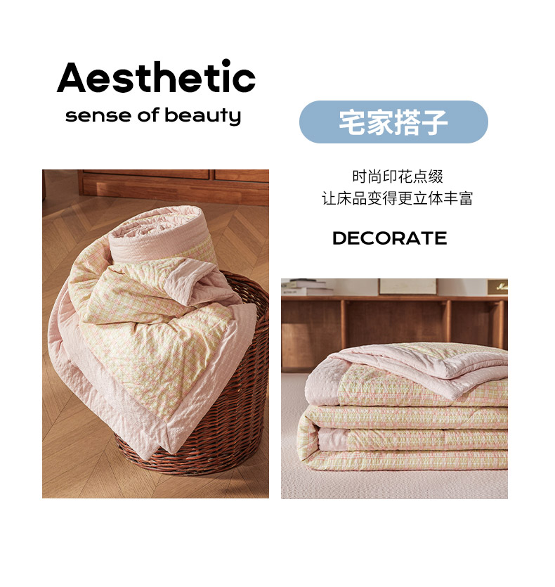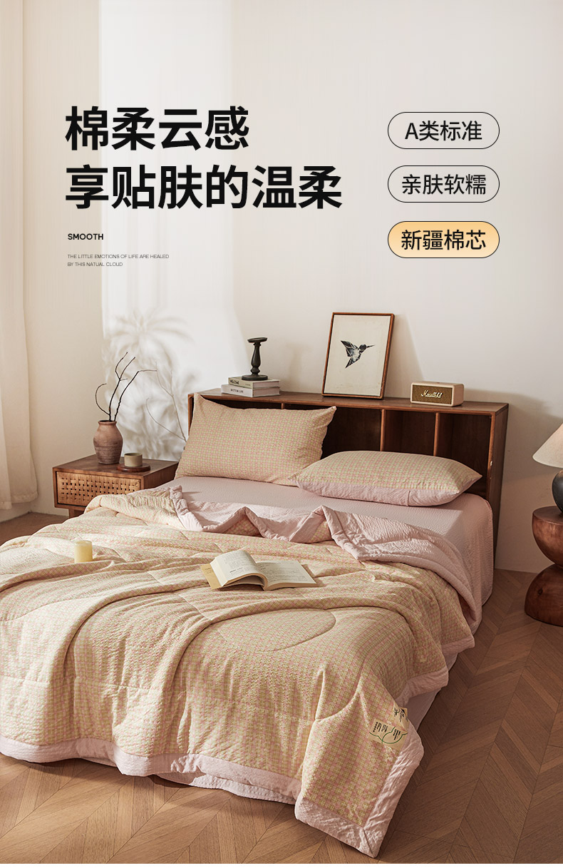 • 91家纺网 家纺一手货源 找家纺 熙宴家纺 2026新款云感泡芙棉花夏被四件套 粉方格