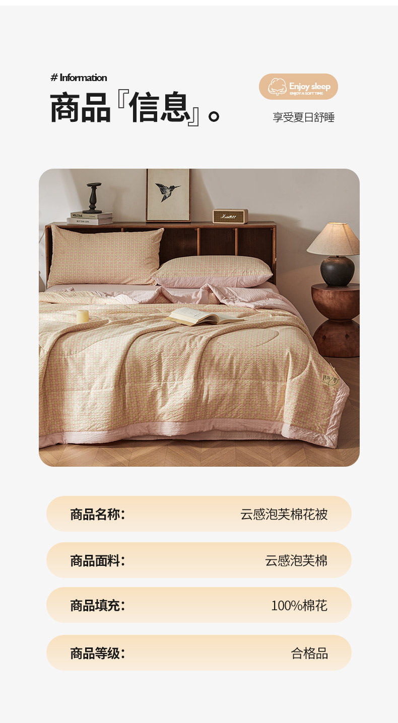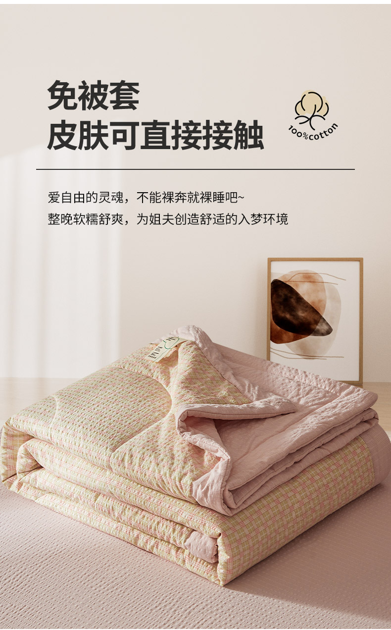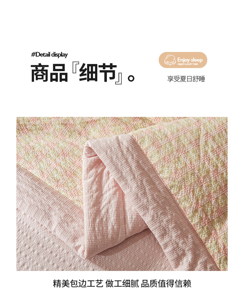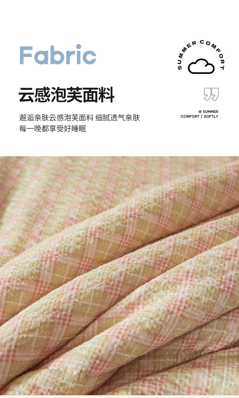 当前位置: 91家纺网 > 商品网购 > 被子 > 夏被 > 熙宴家纺 2026新款云感泡芙棉花夏被四件套 粉方格