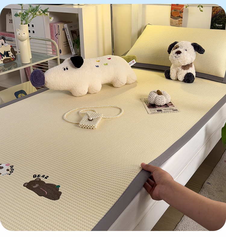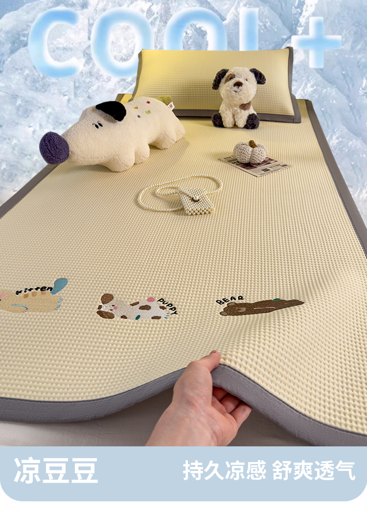 商品名称:(总)耀悦家纺 2026新款毛巾绣乙纶冰豆豆凉席冰丝席华夫格卡通绣花博主ins风学生床