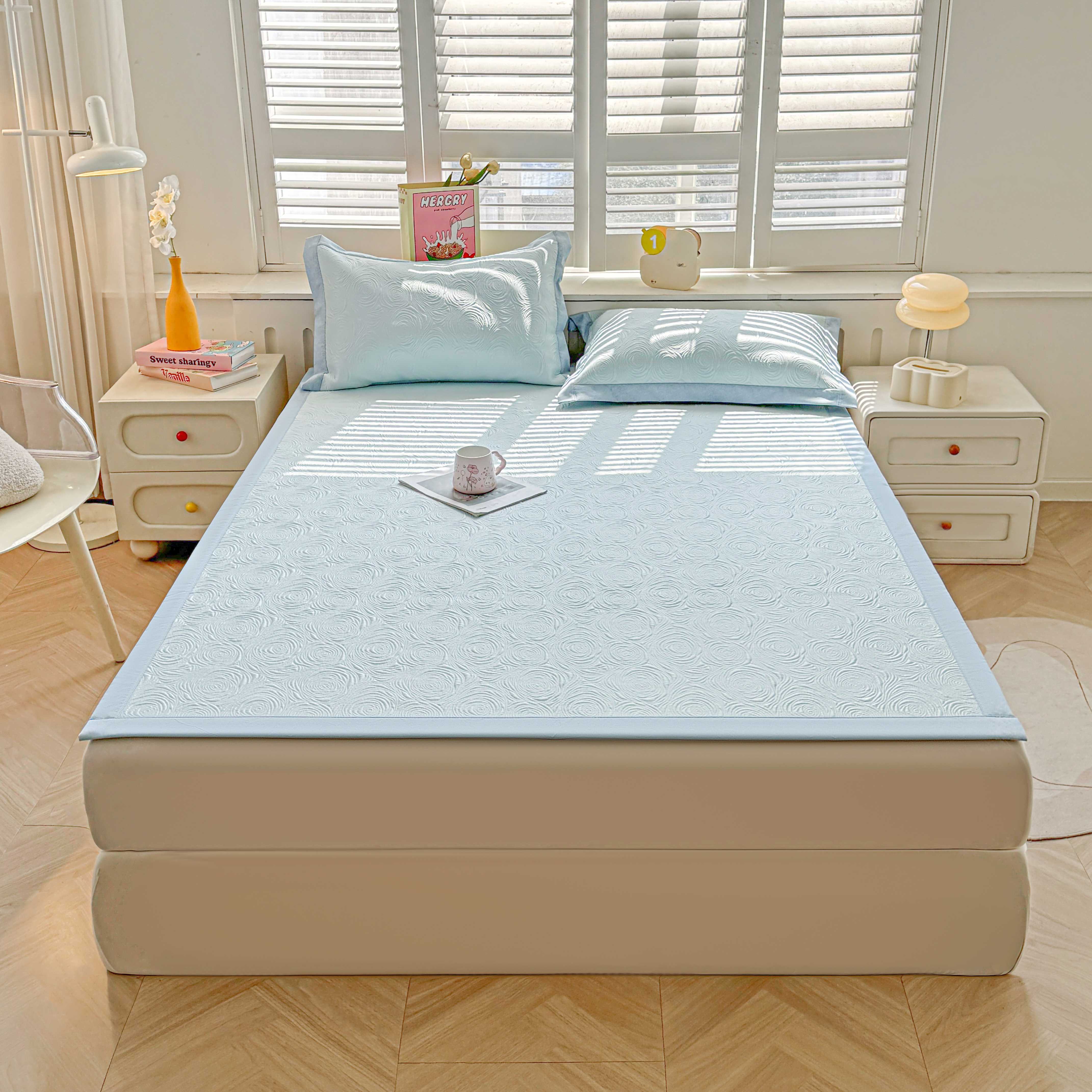 商品名称:席匠 2026新款云柔玫瑰系列平铺款床裙款凉席席子 樱花粉-床裙款