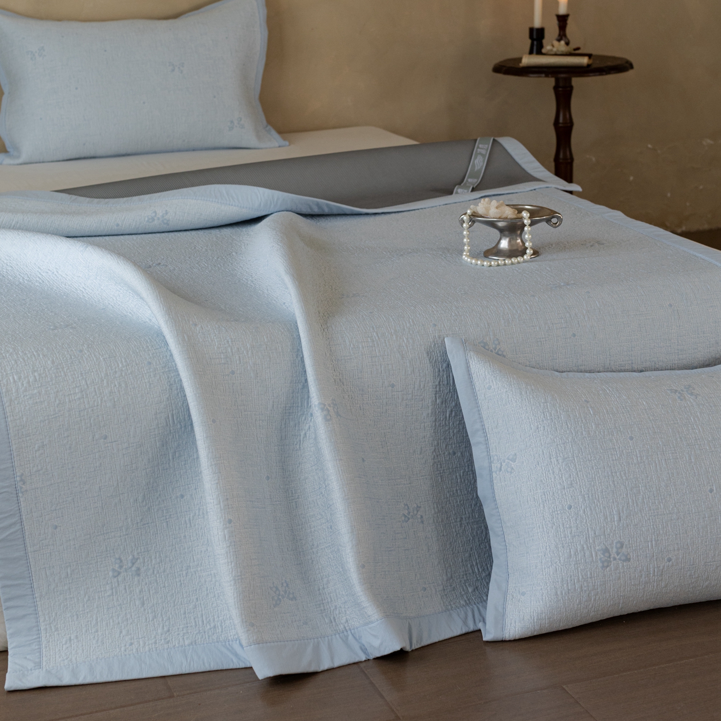 商品名称:云上 2026新款冷萃丝三明治凉感席凉席席子-蝴蝶结系列 蝴蝶结床笠款-蓝色