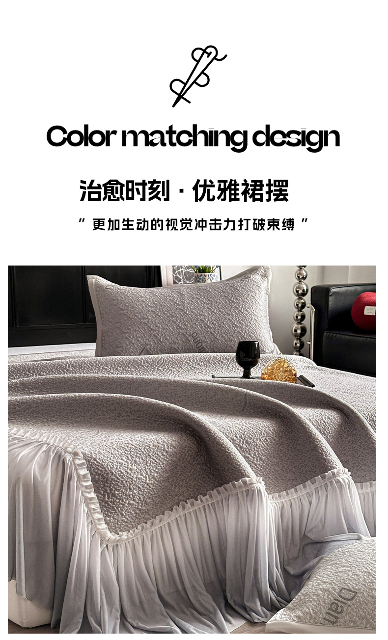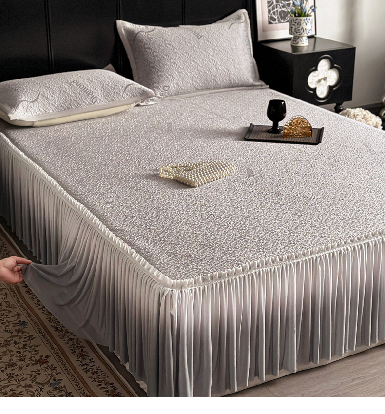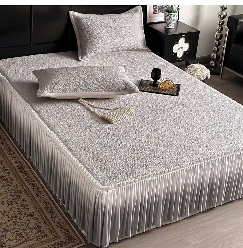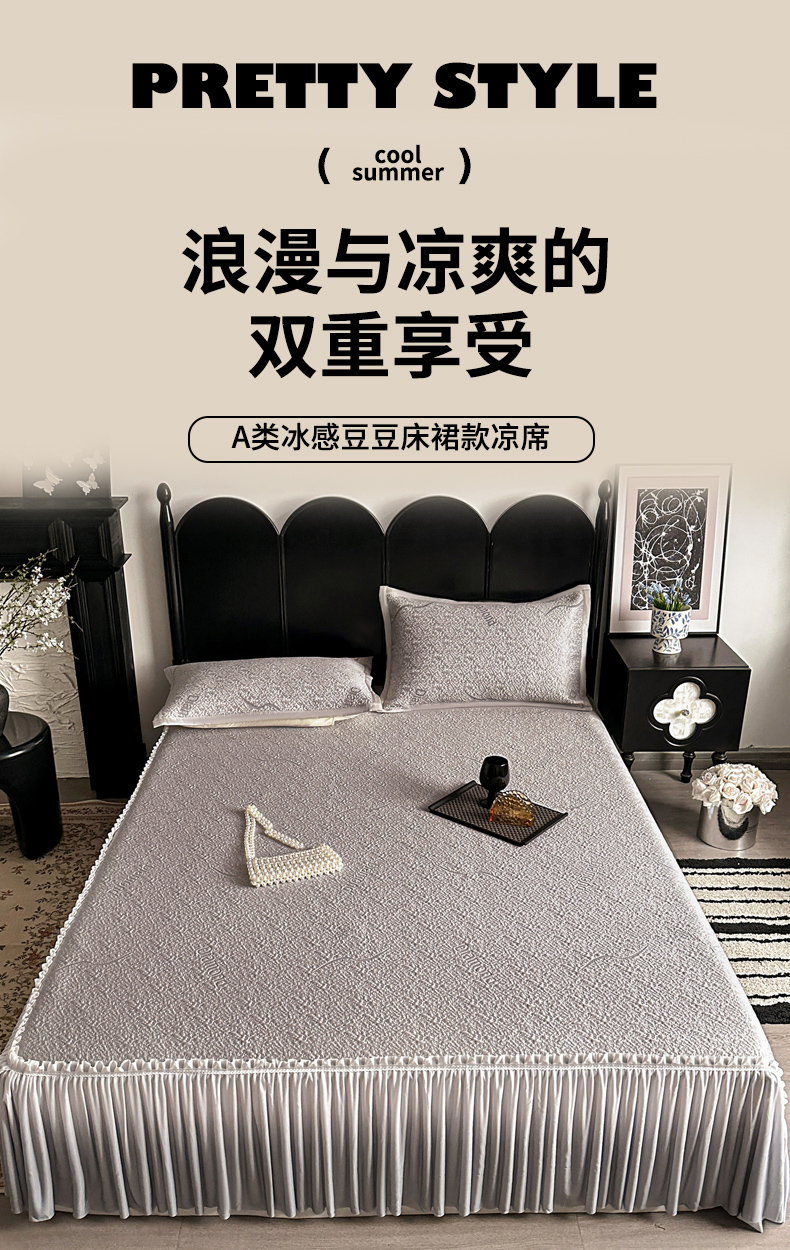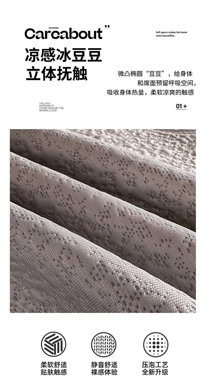 当前位置: 91家纺网 > 商品网购 > 床上用品 > 凉席 > 其他凉席 > 富馨莱 2026春夏新款PE乙纶高克重冰豆豆席凉感凉席单件床裙三件套支持一件定做尺寸 寻意-灰