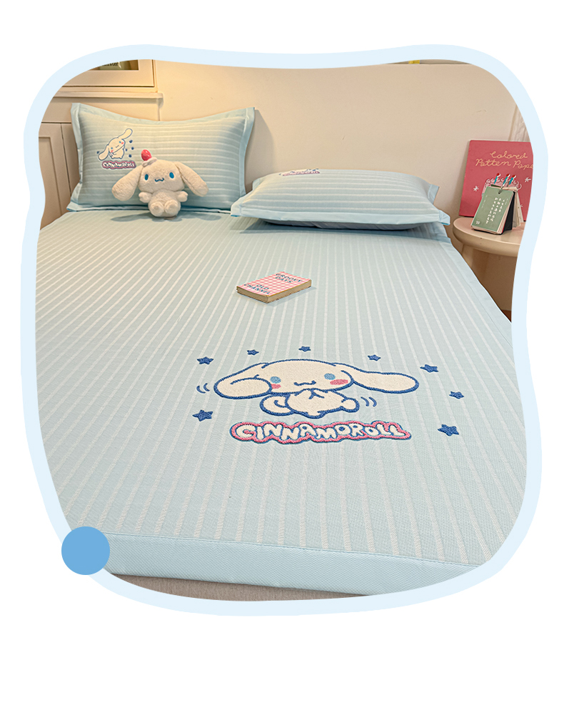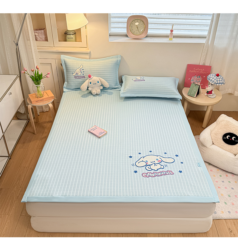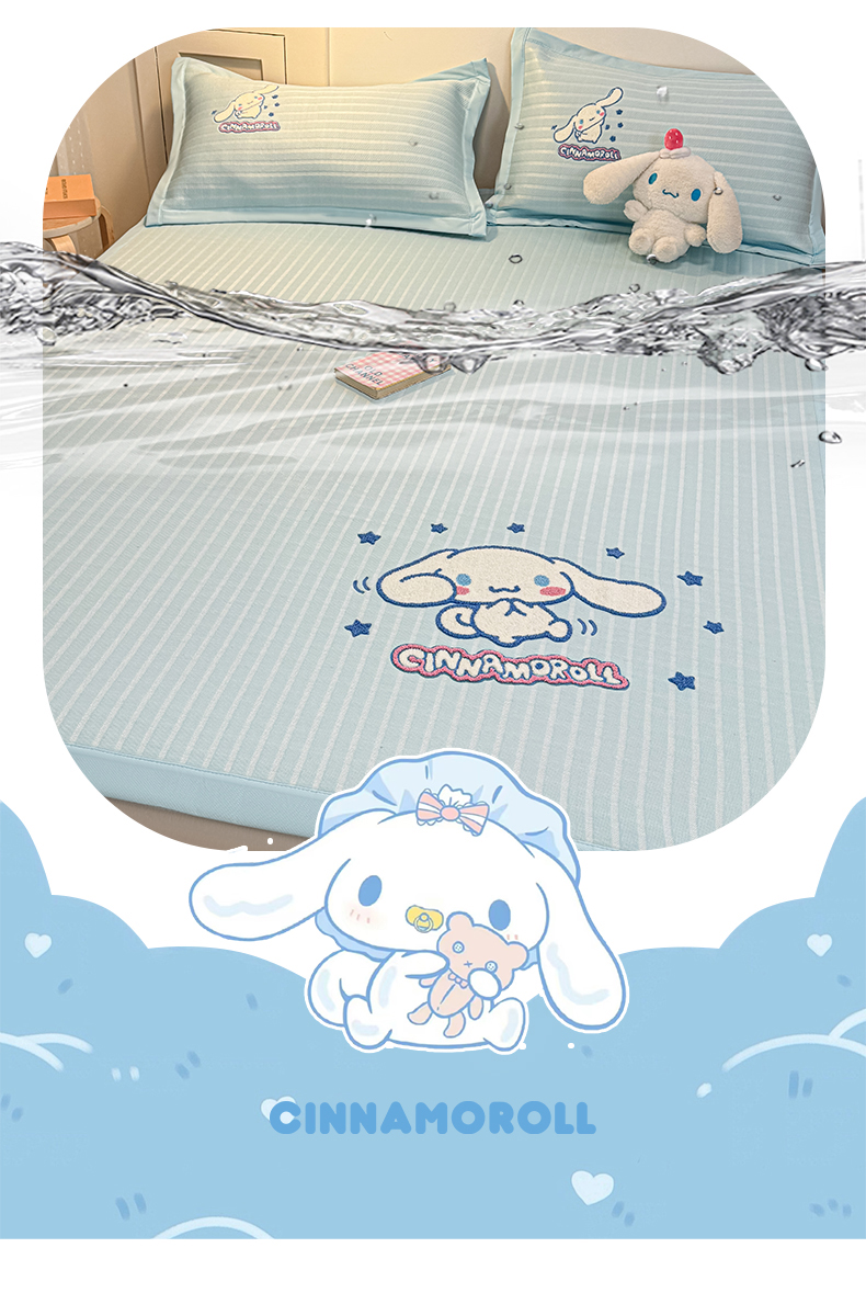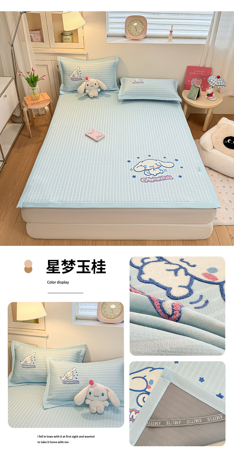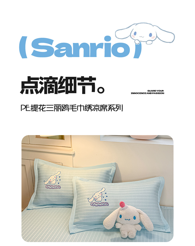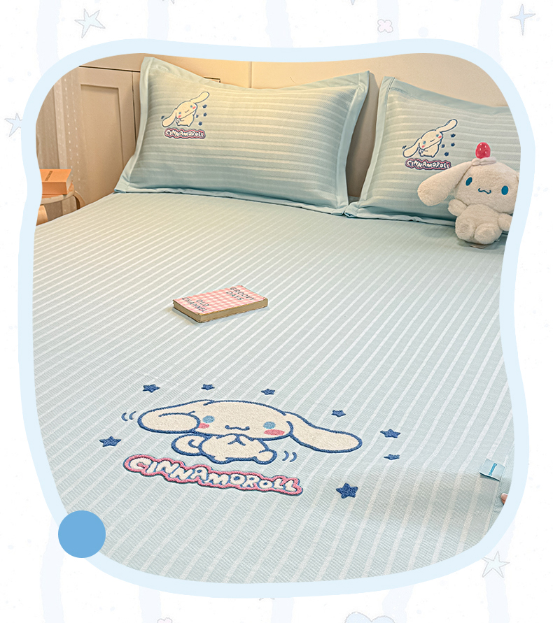 商品名称:蓝邻家纺 2026年新款PE提花三丽鸥毛巾绣凉席系列-平铺款 星梦玉桂