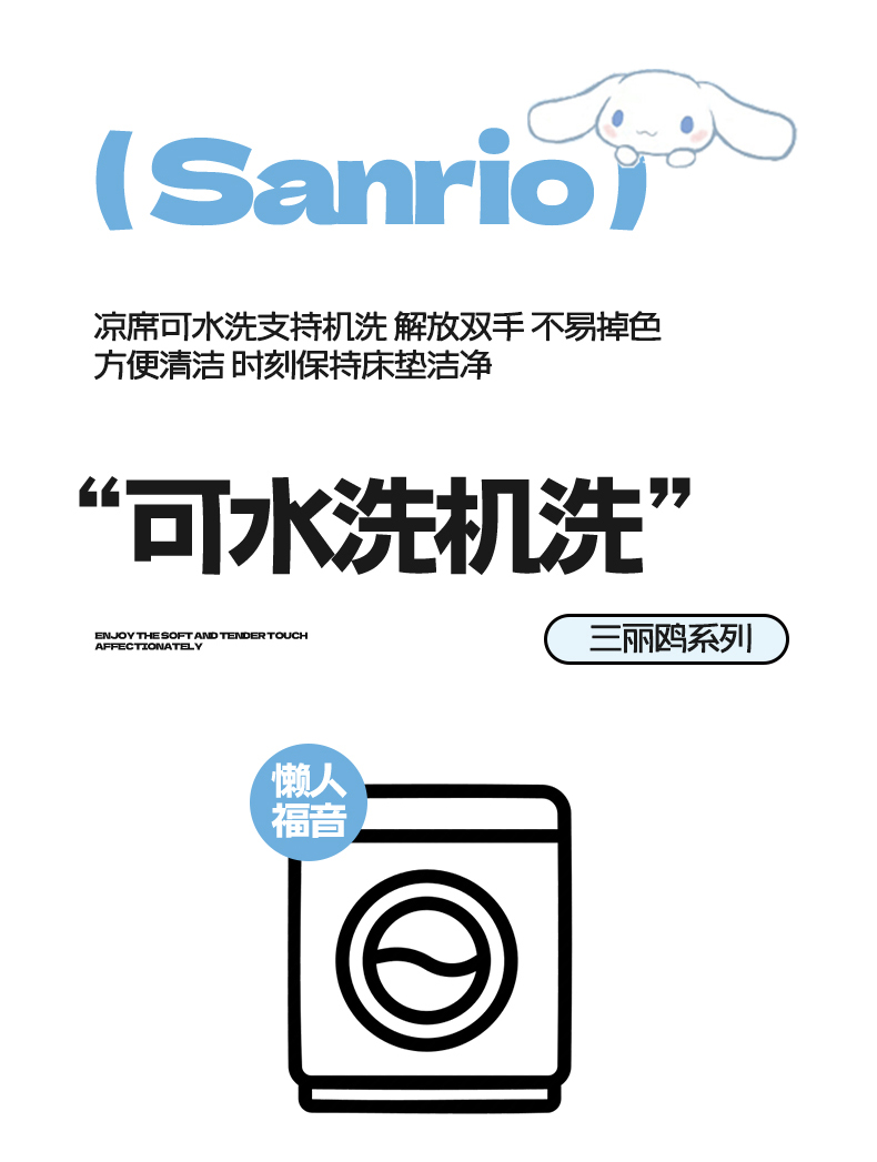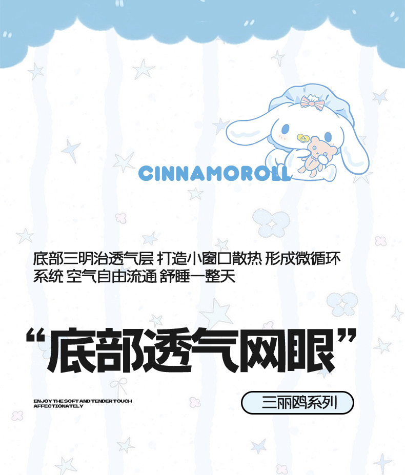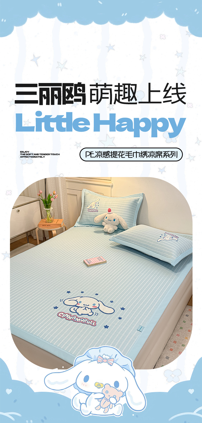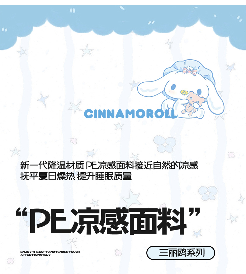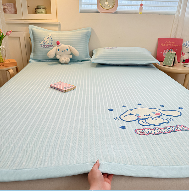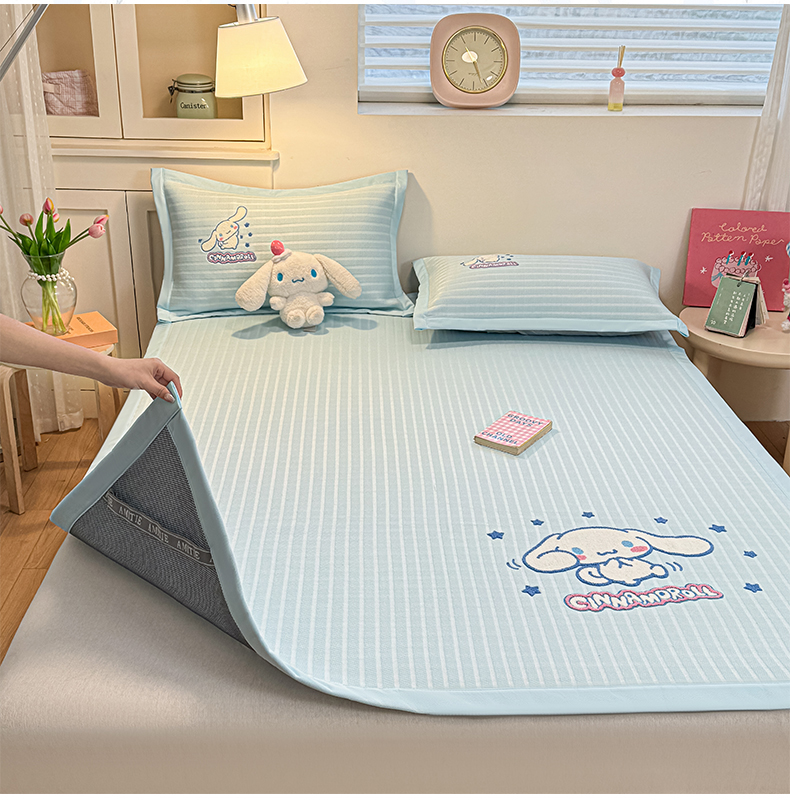 商品名称:蓝邻家纺 2026年新款PE提花三丽鸥毛巾绣凉席系列-平铺款 星梦玉桂