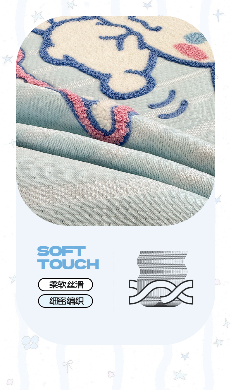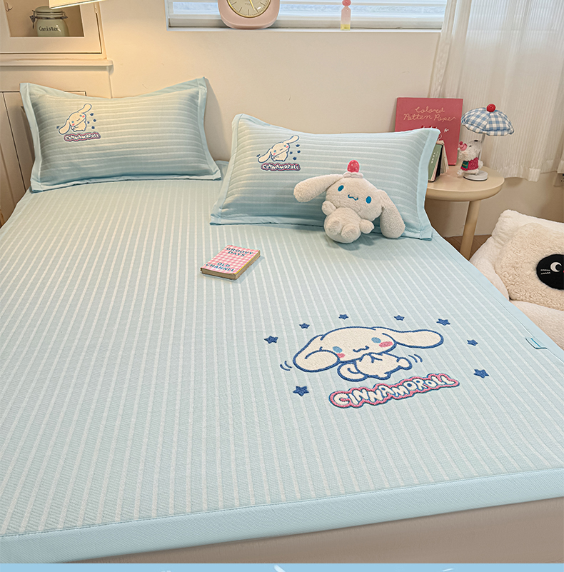蓝邻家纺 2026年新款PE提花三丽鸥毛巾绣凉席系列-平铺款 星梦玉桂