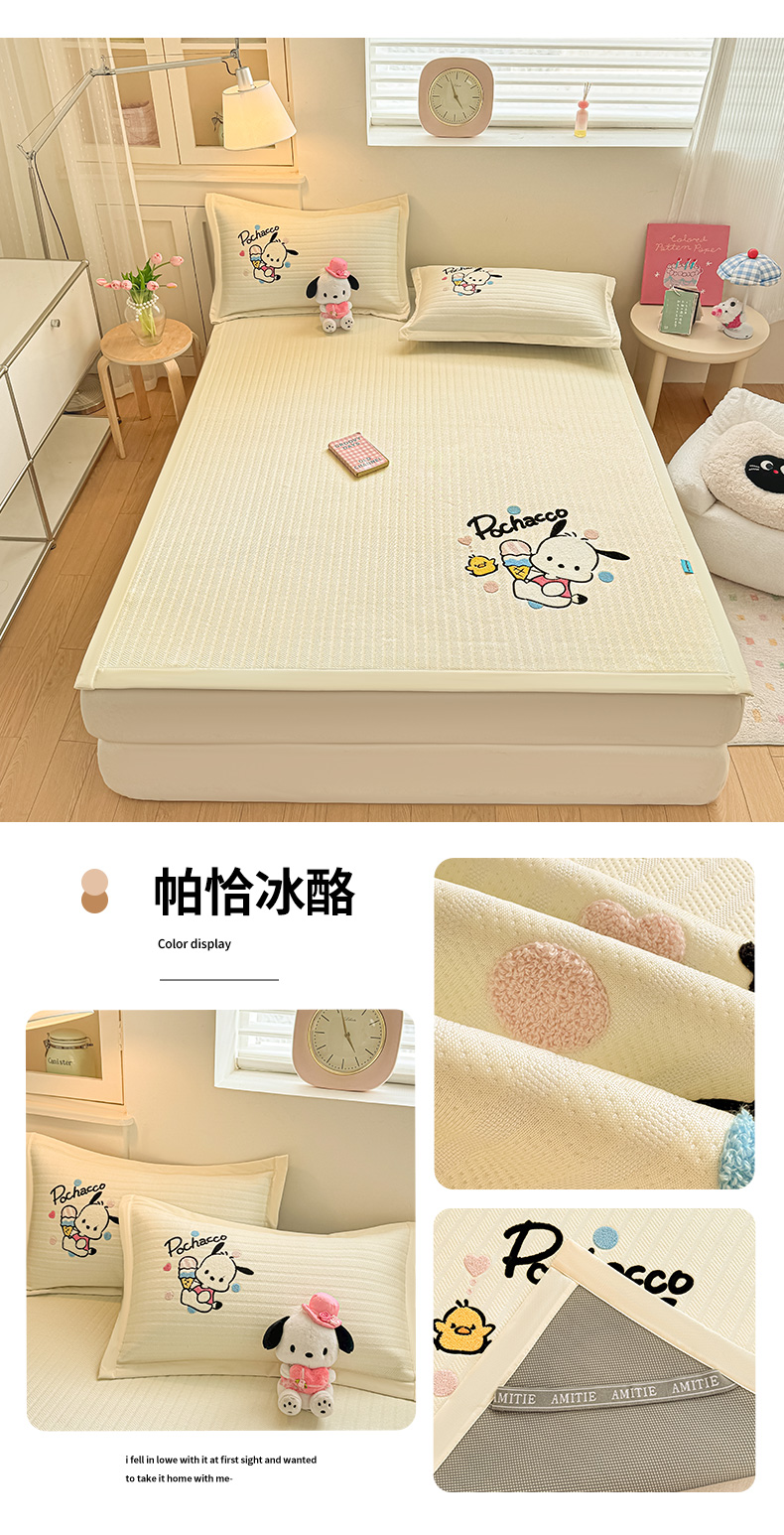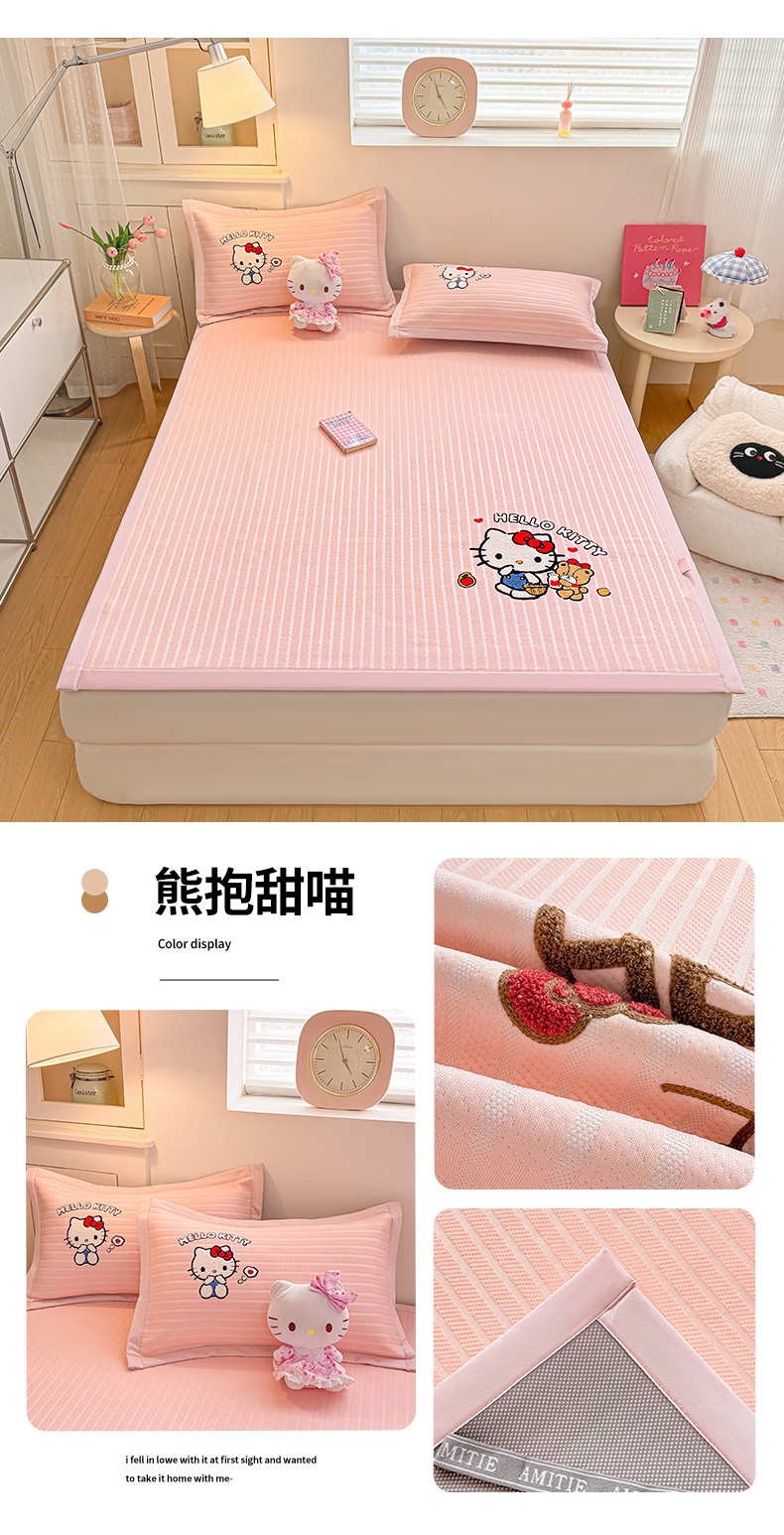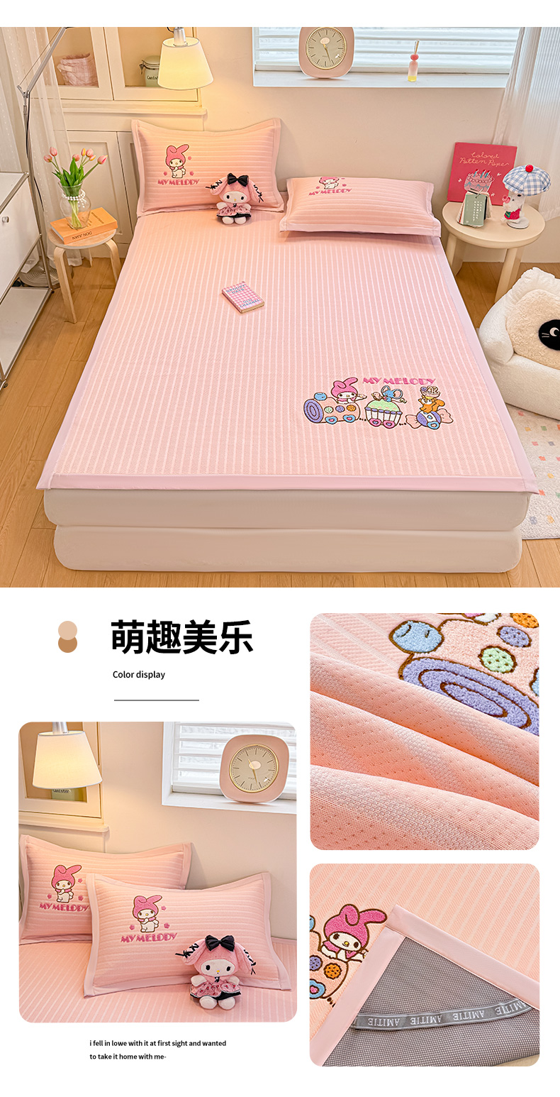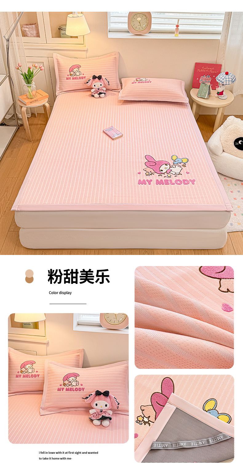 (总)蓝邻家纺 2026年新款PE提花三丽鸥毛巾绣凉席系列-学生床,粉甜美乐,粉音kitty,萌趣美乐,帕恰冰酪,软萌帕恰,星梦玉桂,熊抱甜喵