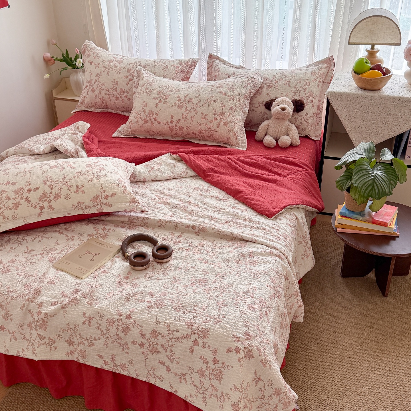 (总)禾沐 2026新款泡芙棉泡芙纱夏被四件套,爱心点点,波点,费尔岛小狗,古典格,红果兔兔,花间娃娃,灰爱心,丽莎,栗色木马纹,蜜桃小兔,描线猫,柔诗意,甜桃心,星芒凯蒂,秀妍,只闻花香,仲夏,组合