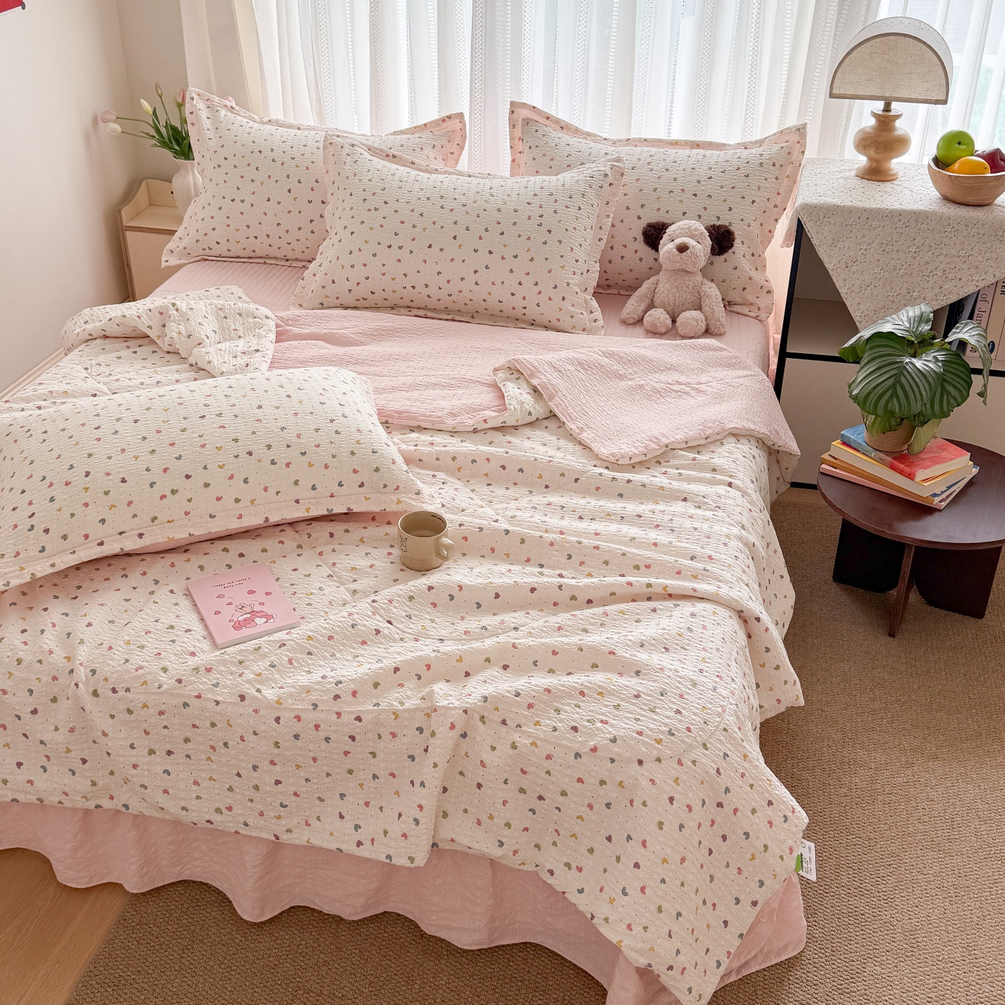 (总)禾沐 2026新款泡芙棉泡芙纱夏被四件套,爱心点点,波点,费尔岛小狗,古典格,红果兔兔,花间娃娃,灰爱心,丽莎,栗色木马纹,蜜桃小兔,描线猫,柔诗意,甜桃心,星芒凯蒂,秀妍,只闻花香,仲夏,组合
