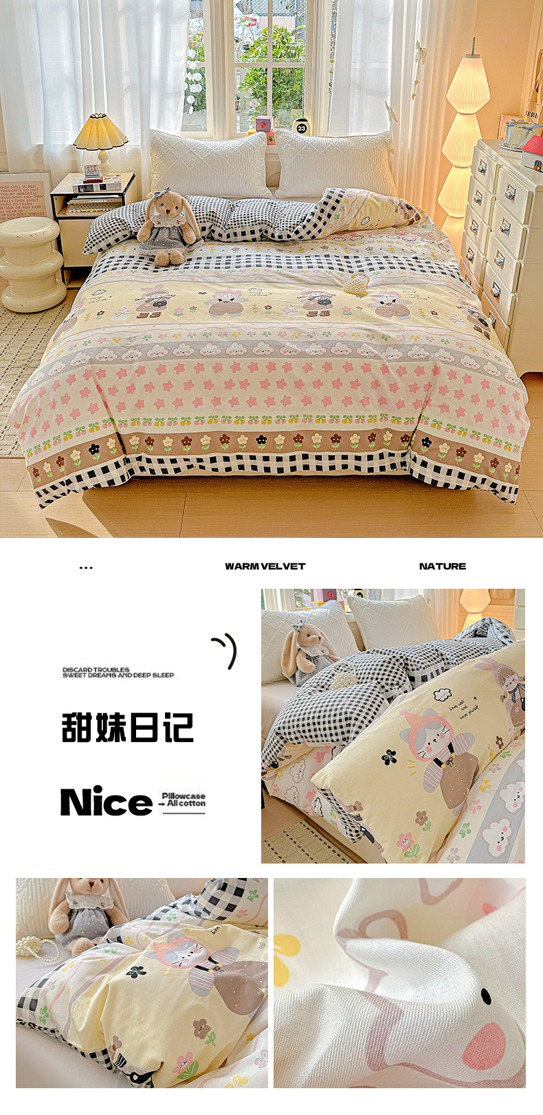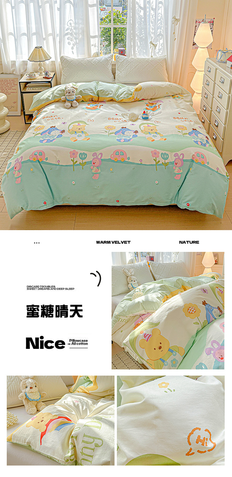 (总)依庭 2025新款高克重全棉纯棉磨毛印花四件套,乐享,奥维斯,贝丽丝,彼得兔,草莓奶昔,茶言妙语,初漫,蝶恋花,朵唯,朵韵,芳盈,飞花令,哈基米,好伙伴,好运熊-咖,好运熊-蓝,红冠象,花色伊人,吉唛,悸动,惊鸿-粉,惊鸿-桔,可爱兔,恐龙告白,酷小狗,快乐星球,蓝色恋人,绿萝,玛雅,曼迪,玫瑰花语,萌车派对,萌宠,莫利格,奶油小狗,南瓜熊,尼彩,帕比,皮皮狗,清新花园,山樱,笙白-桔,甜梦茶语,甜心花语,仙女星辰,小欢喜,星梦乐园,星晚-粉,幸福小熊,幸运熊,寻悦-桔,叶叶情深,叶之恋,叶芝,樱贝,樱絮仙踪,优漫,悠悠仙草,柚见,灼华