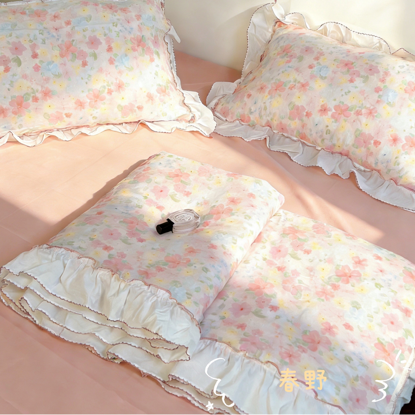 (总)荣轩家居 2026新款韩式浪漫花边工艺款全棉纯棉双层纱四件套(铺床版),奥利奥,伴花眠,芳菲粉,粉黛,海棠听风,花喃,蔓延-紫,米宝,小甜心,絮语,海棠云栖,雾粉蔷薇,春伴,春野,粉格甜梦,可可兔,秘境,星晚-蓝