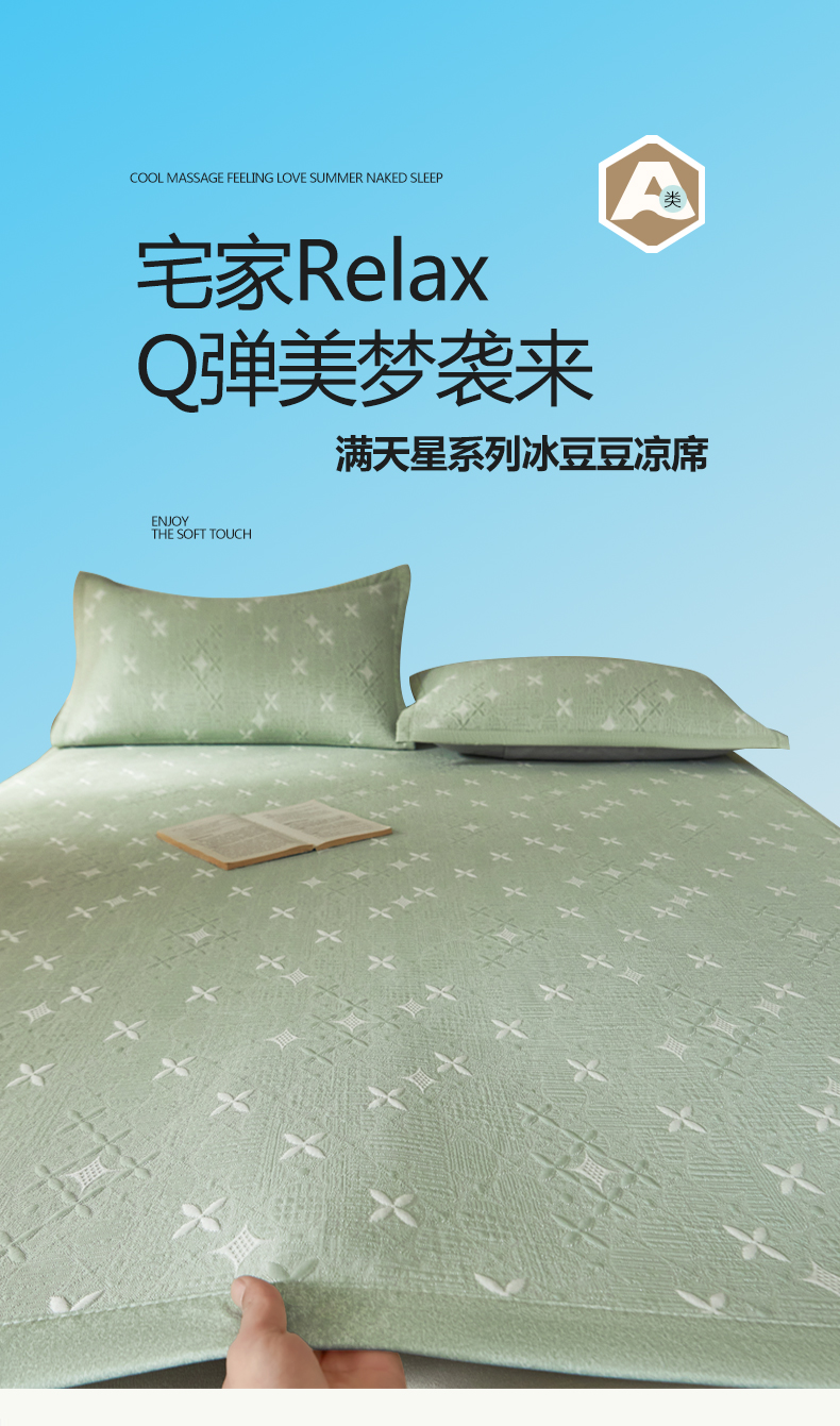 • 91家纺网 家纺一手货源 找家纺 (总)慕木家纺 2026新款满天星系列冰豆豆凉席(三明治复合)乙纶面料,满天星-蓝,满天星-灰,满天星-粉,满天星-绿,满天星-卡其,组合图,罗马曲线-蓝,罗马曲线-粉,罗马曲线-绿,罗马曲线-灰,罗马曲线-卡其
