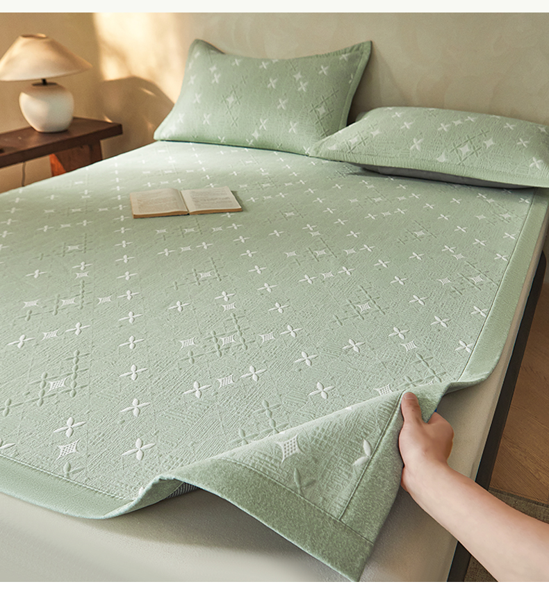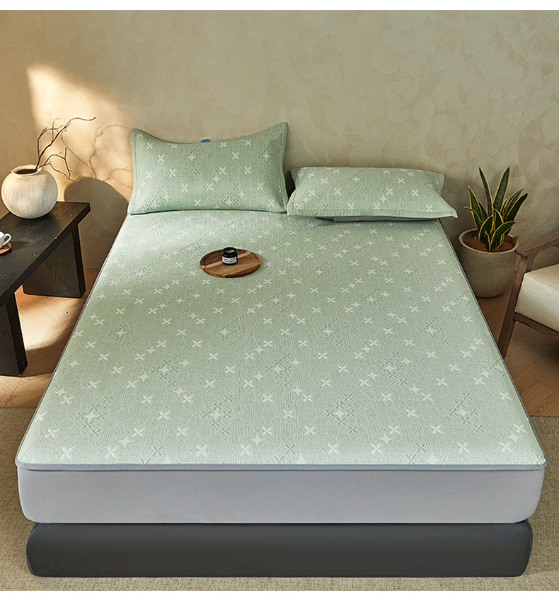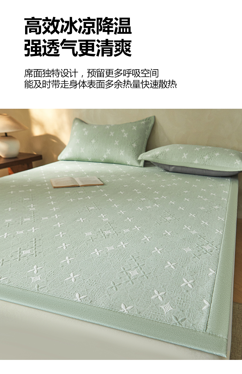• 91家纺网 家纺一手货源 找家纺 慕木家纺 2026新款冰豆豆满天星凉席床笠席子凉席 床席款-满天星-绿