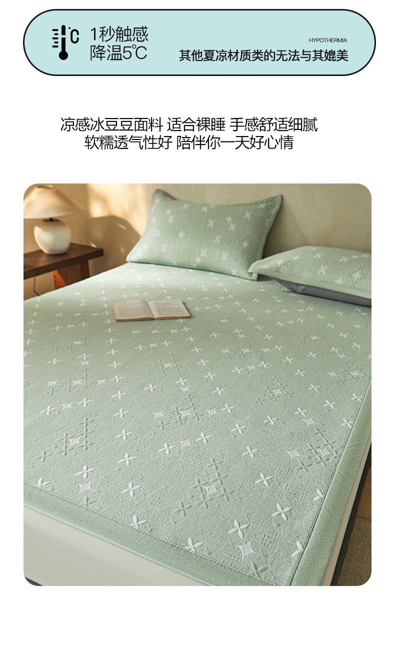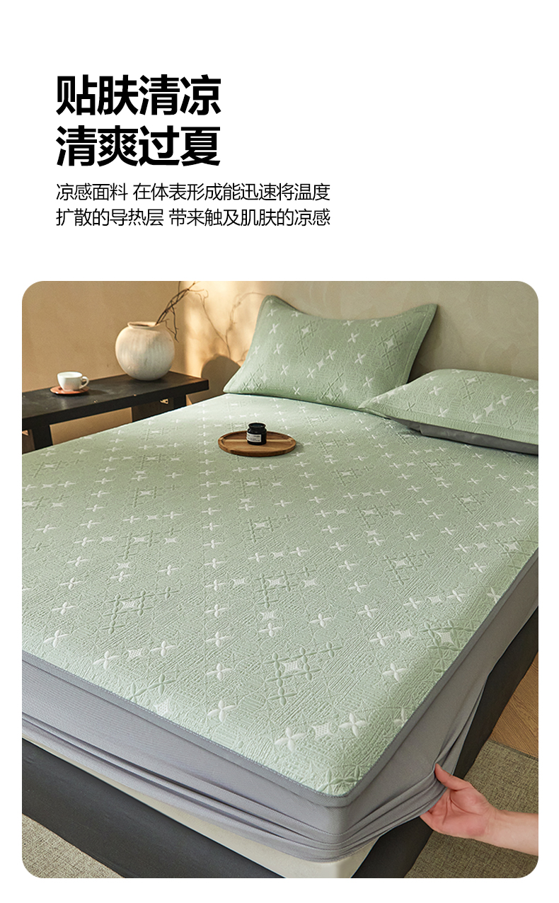 (总)慕木家纺 2026新款高端PE乙纶双面提花560克冰豆豆凉席迎客松系列(提供买家秀),迎客松-蓝床席款,迎客松-绿床席款,迎客松-灰床席款,迎客松-粉床席款,迎客松-蓝床笠款,迎客松-绿床笠款,迎客松-灰床笠款,迎客松-粉床笠款,组合床笠款