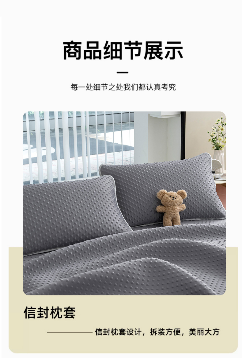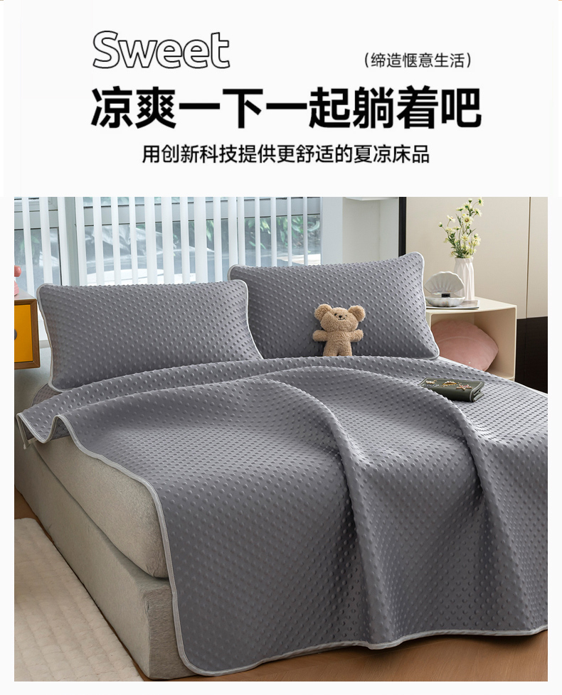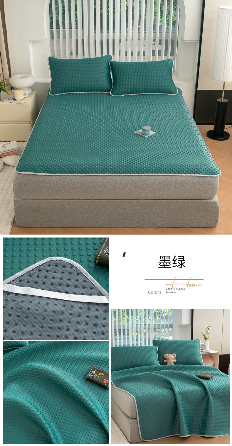 商品名称:默忆 2026新款3D轻奢风A类直播网红热款凉感丝冰豆豆三明治复合床单款凉席两件套三件套 孔雀蓝